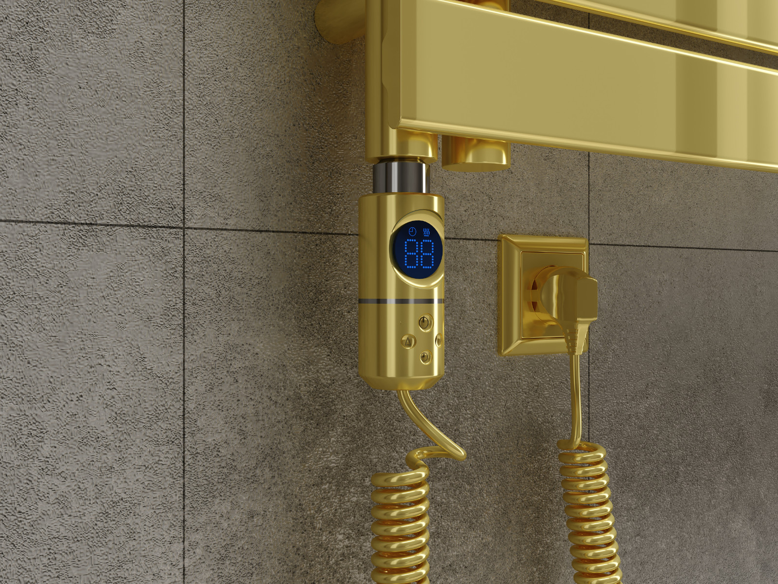 HD Astoria Gold 1600x600 mm elektromos design törölközőszárító radiátor 900W-os fűtőpatronnal, fényes arany