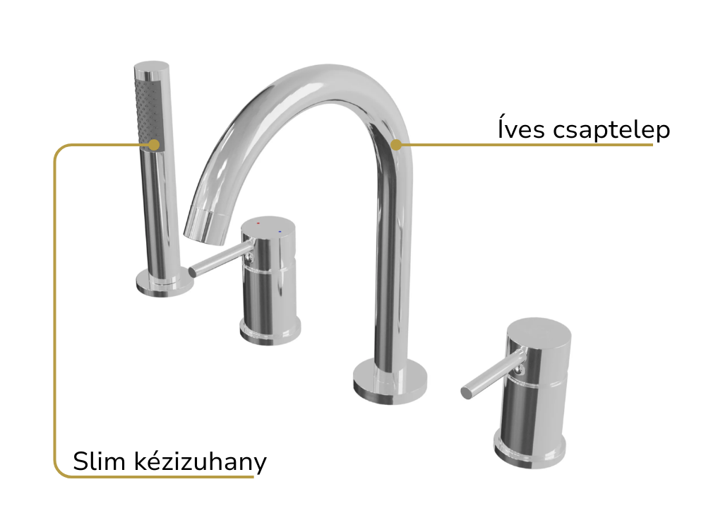 A kádtöltő csaptelep elemei: