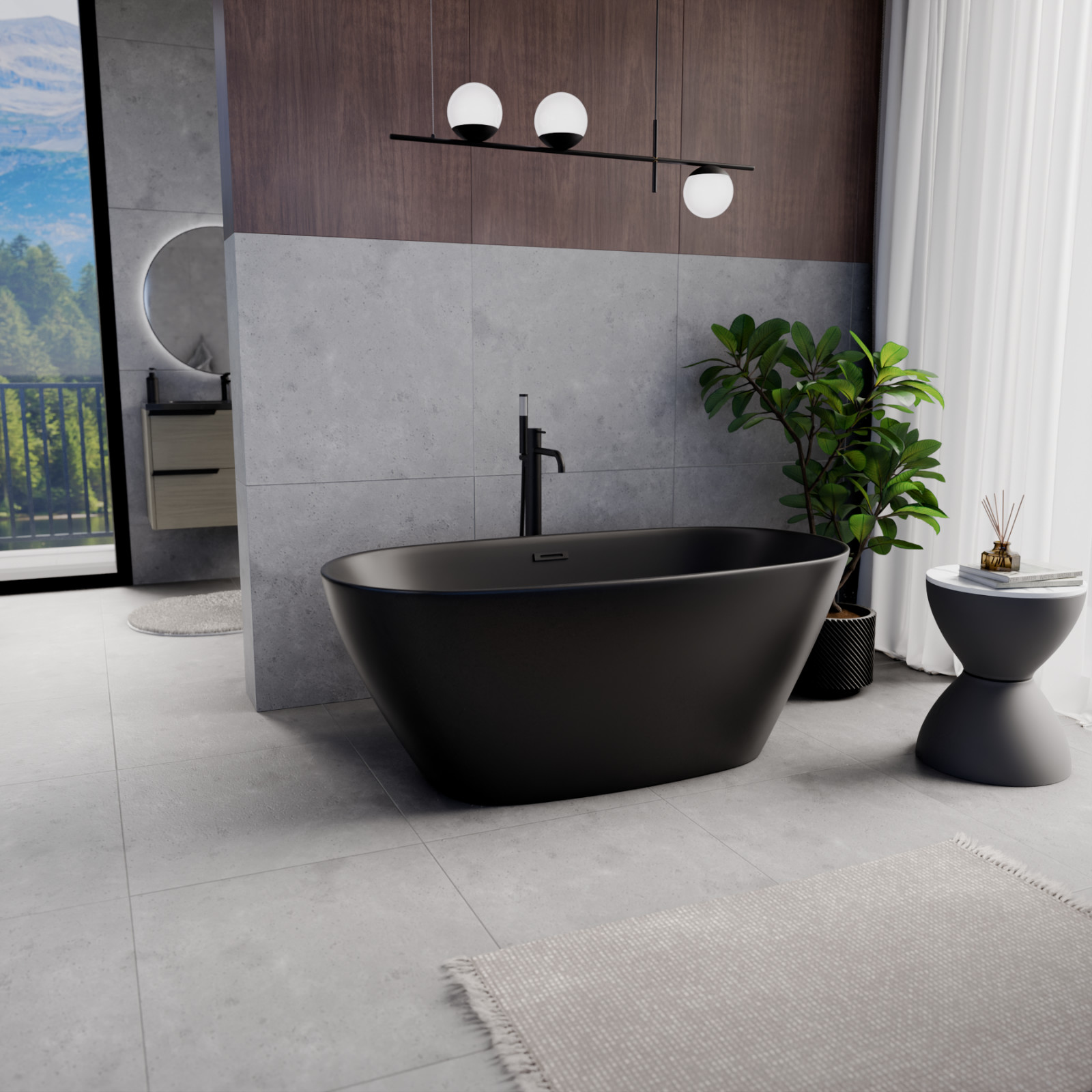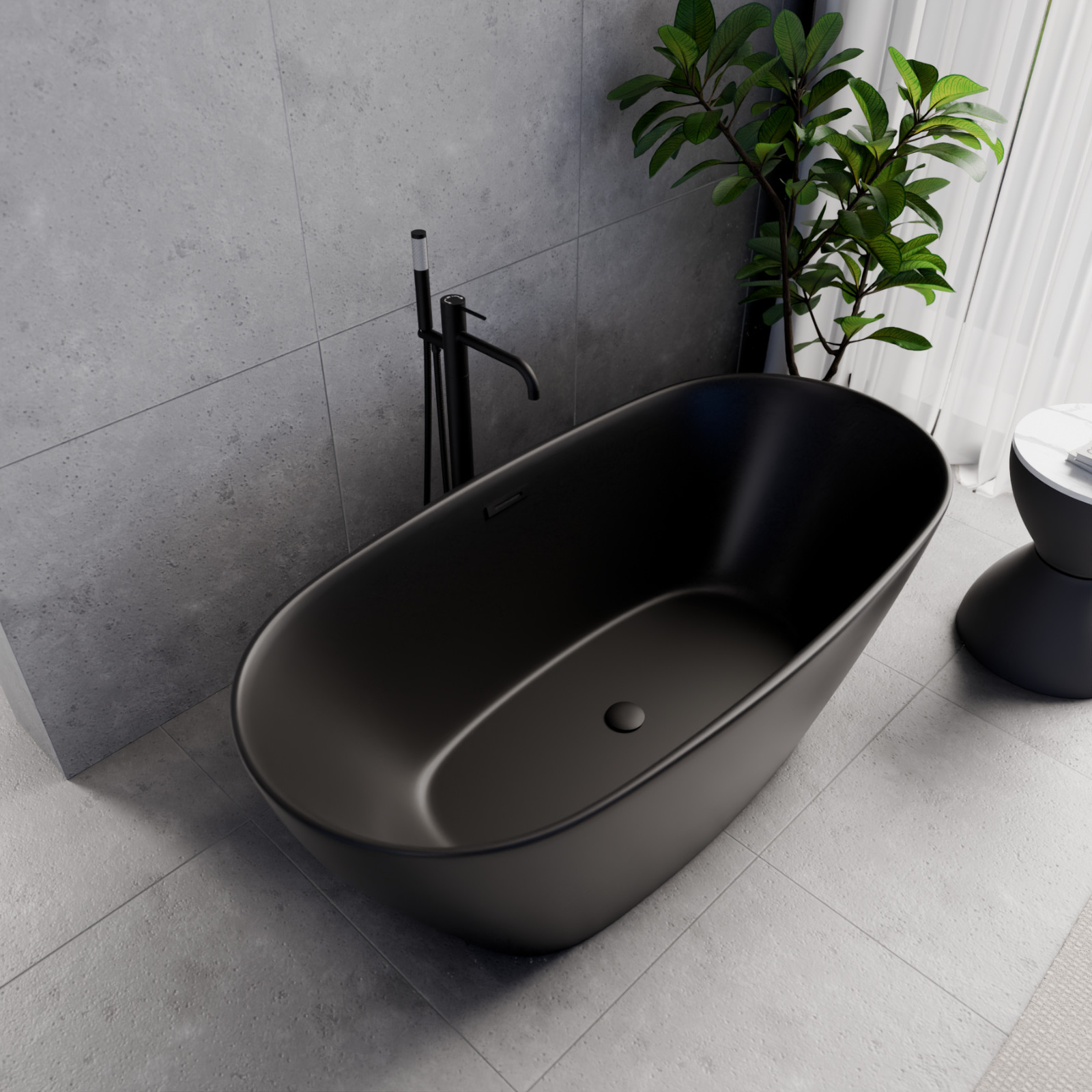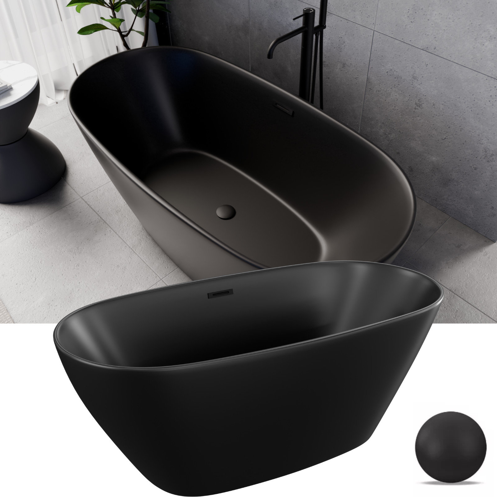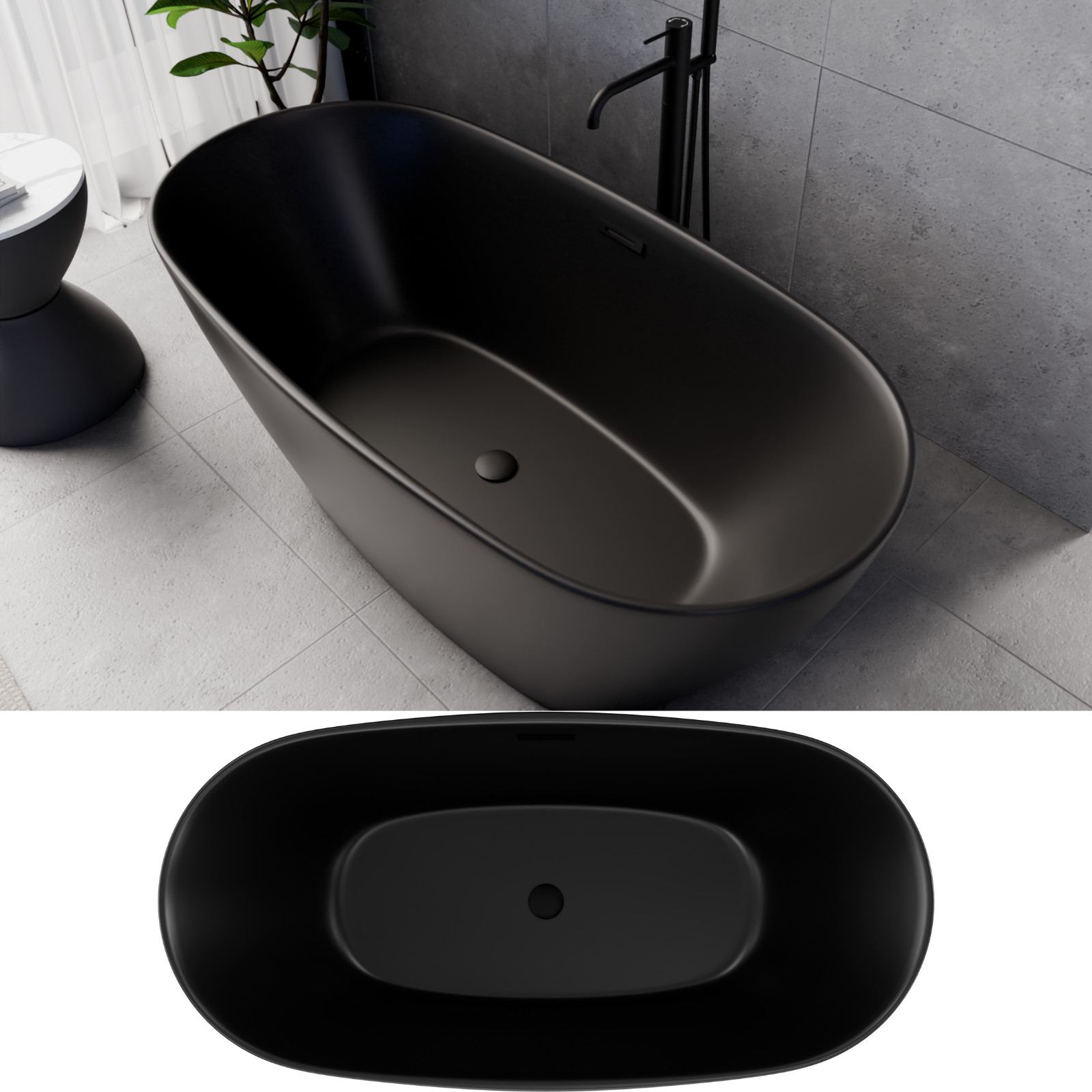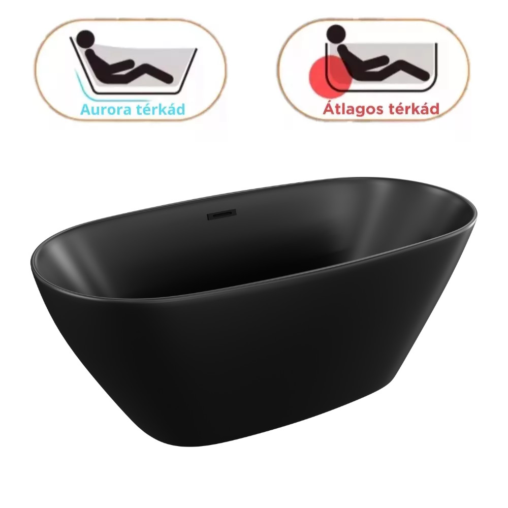 Aurora Matt Black ovális térben álló akril kád, 150 cm hosszú