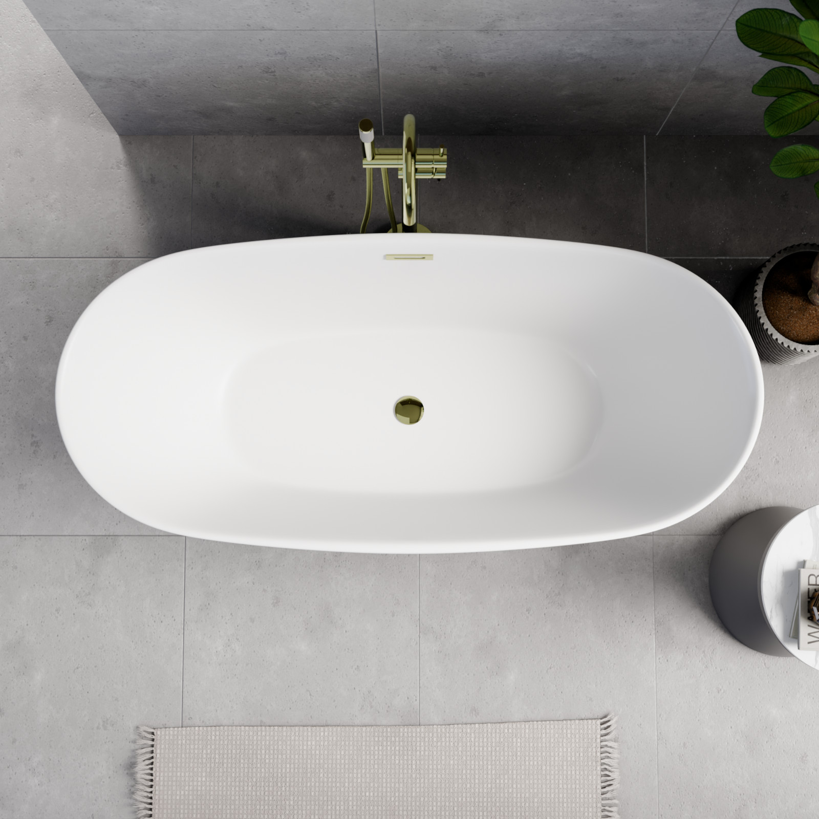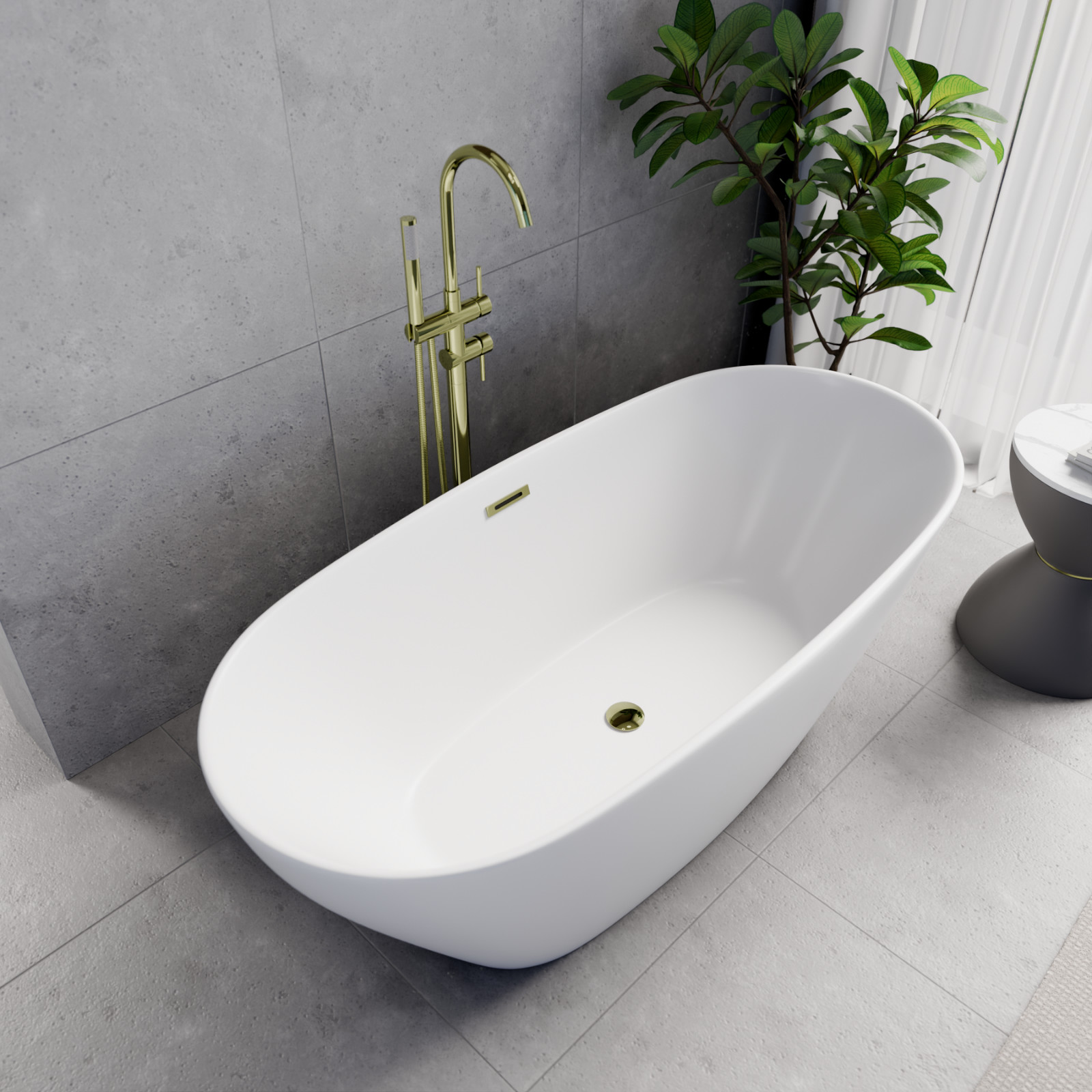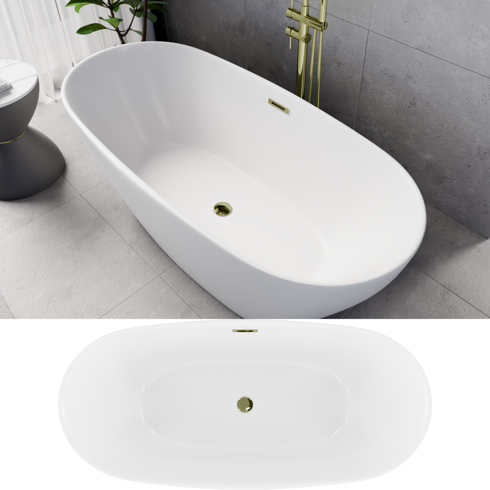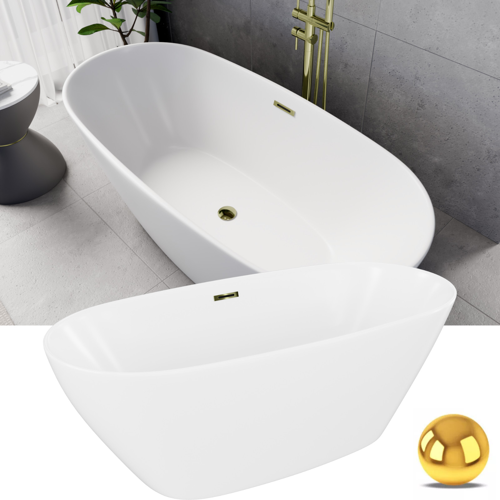 HD Aurora Matt White 160x75 ovális térben álló akril kád fényes arany túlfolyóval és click-clack leeresztővel