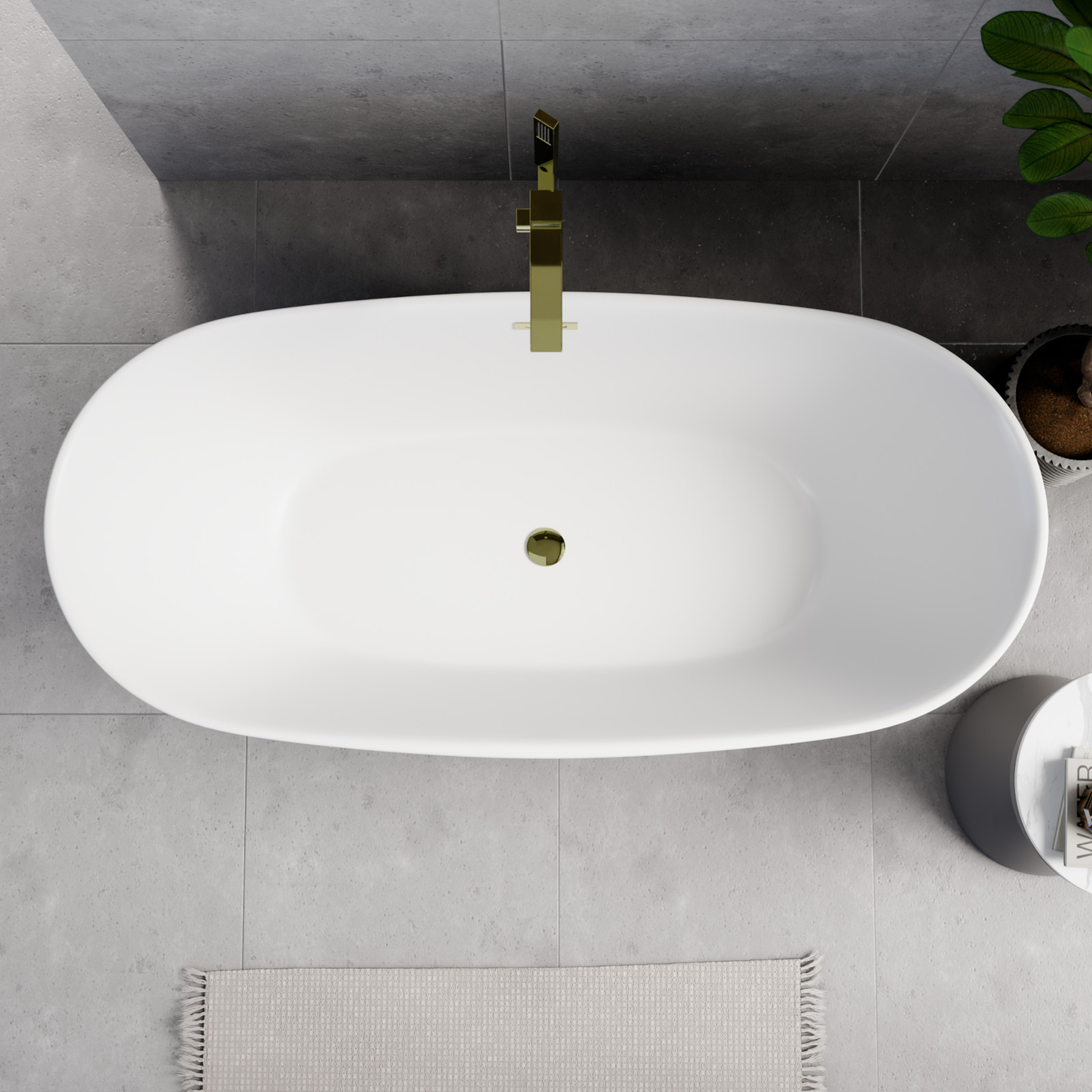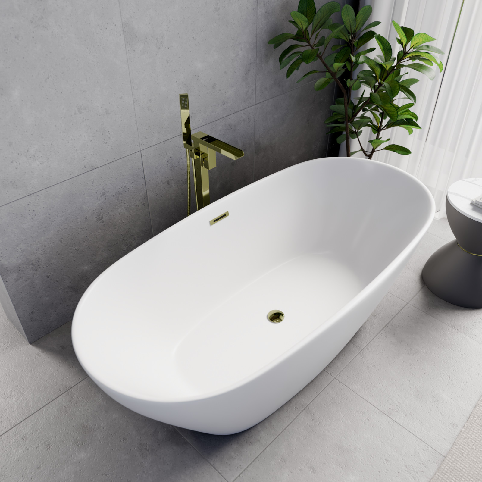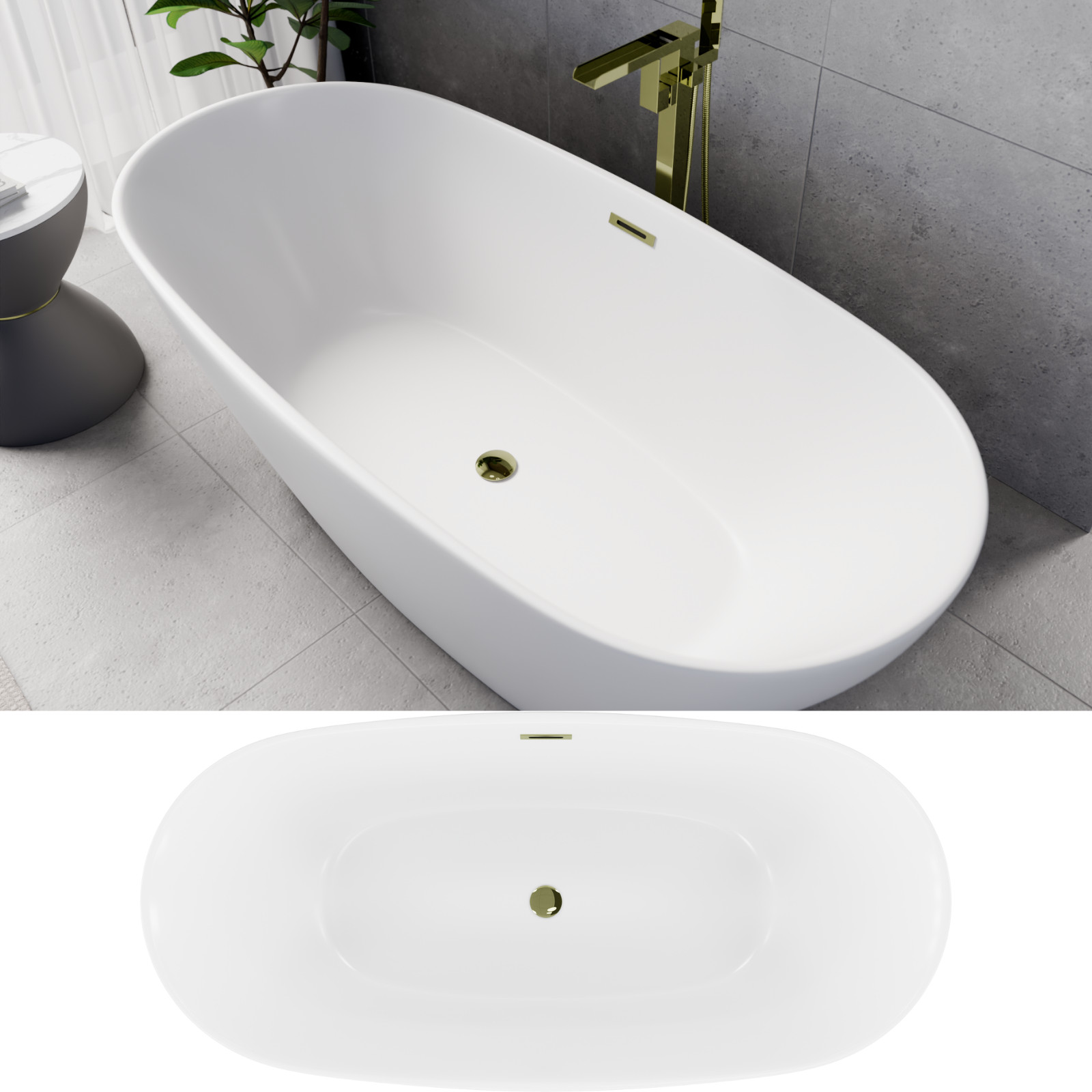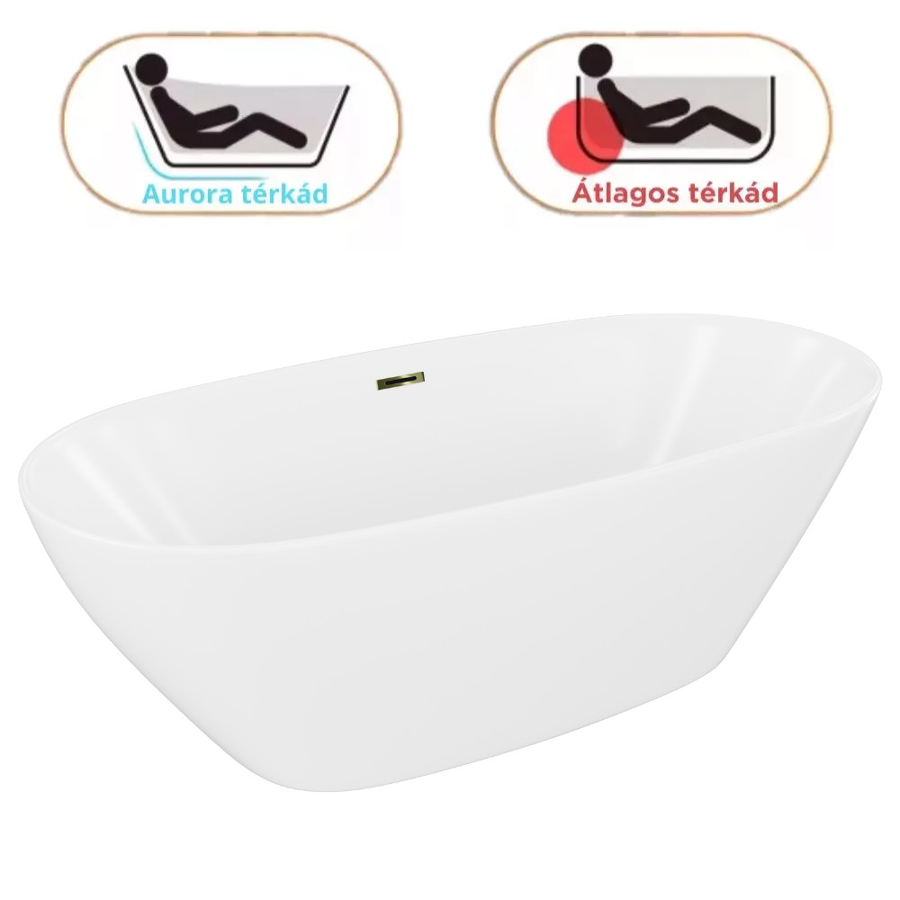 HD Aurora Matt White 170x75 ovális térben álló akril kád fényes arany túlfolyóval és click-clack leeresztővel
