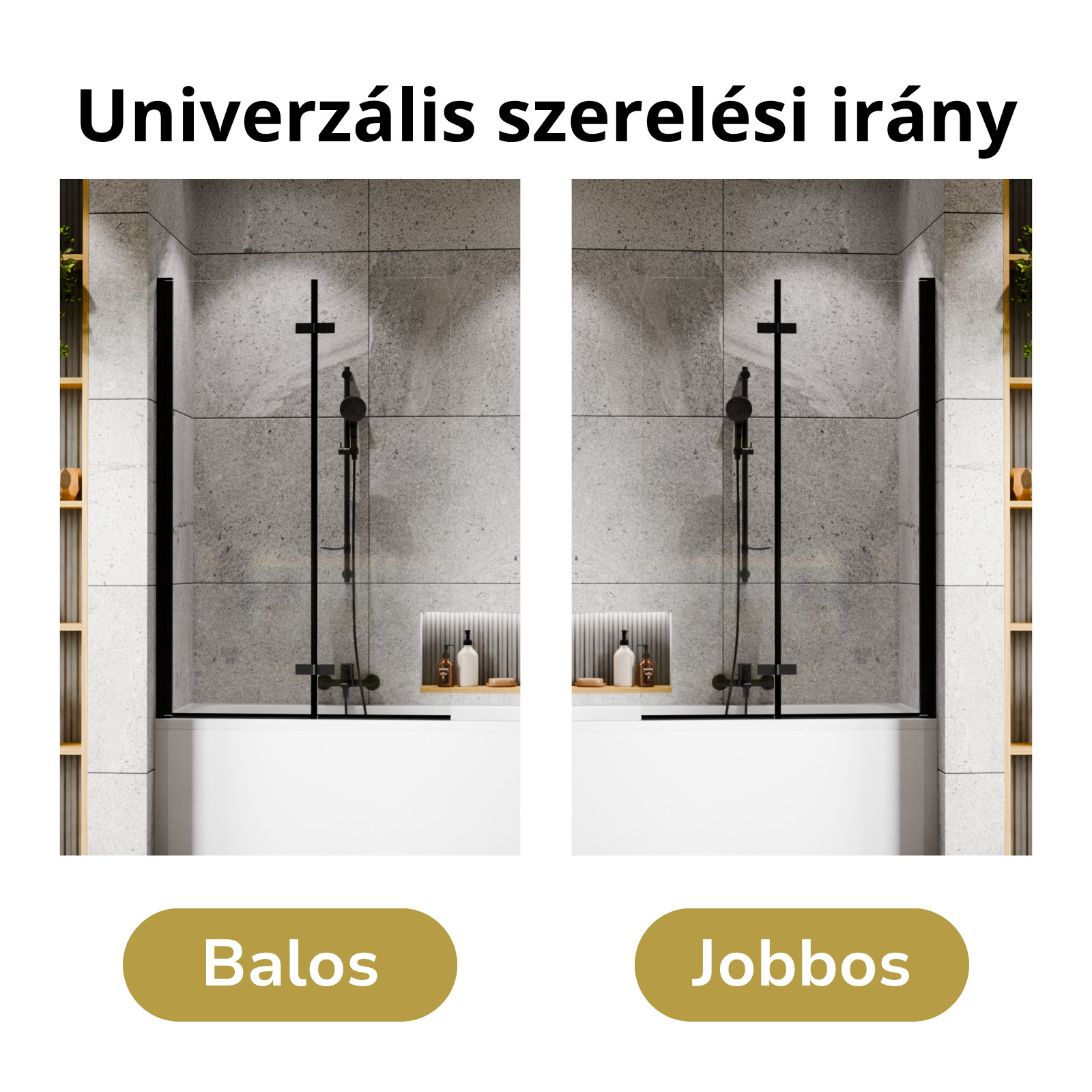A kádparaván felszerelhetősége univerzális, miszerint, bármilyen irányban, bal vagy akár jobb oldalra is felszerelheti a terméket lehetőségei és igénye szerint.