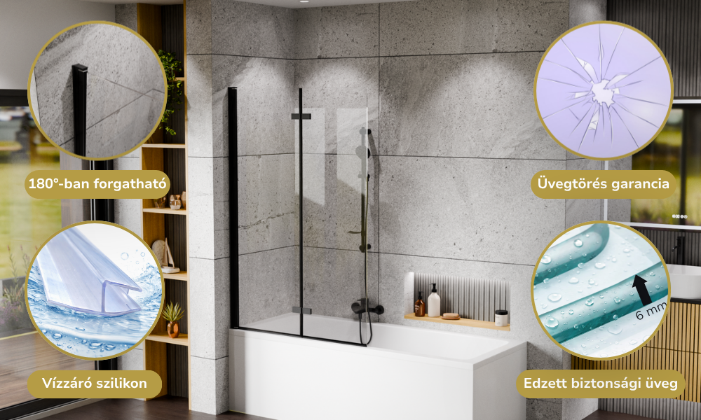 Ezen kiegészítő elemeket ötvözve az átlátszó biztonsági üveggel egy káprázatos terméket kapunk. Nagy fokú tartósság jellemzi, amivel biztosítja hosszútávon a gondtalan használatot az Ön és családja számára. Mélyen hiszünk benne, hogy ezzel a kádparavánnal hozzájárulhatunk a reggeli vagy akár a nap végi felfrissüléshez.