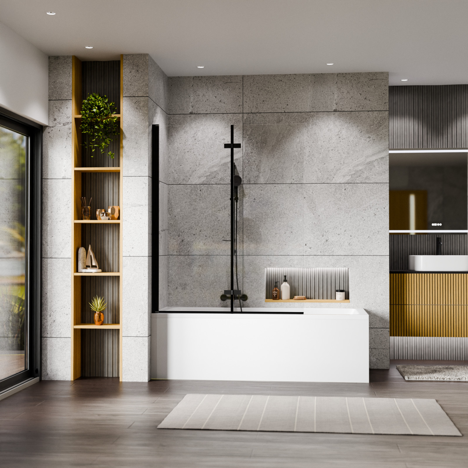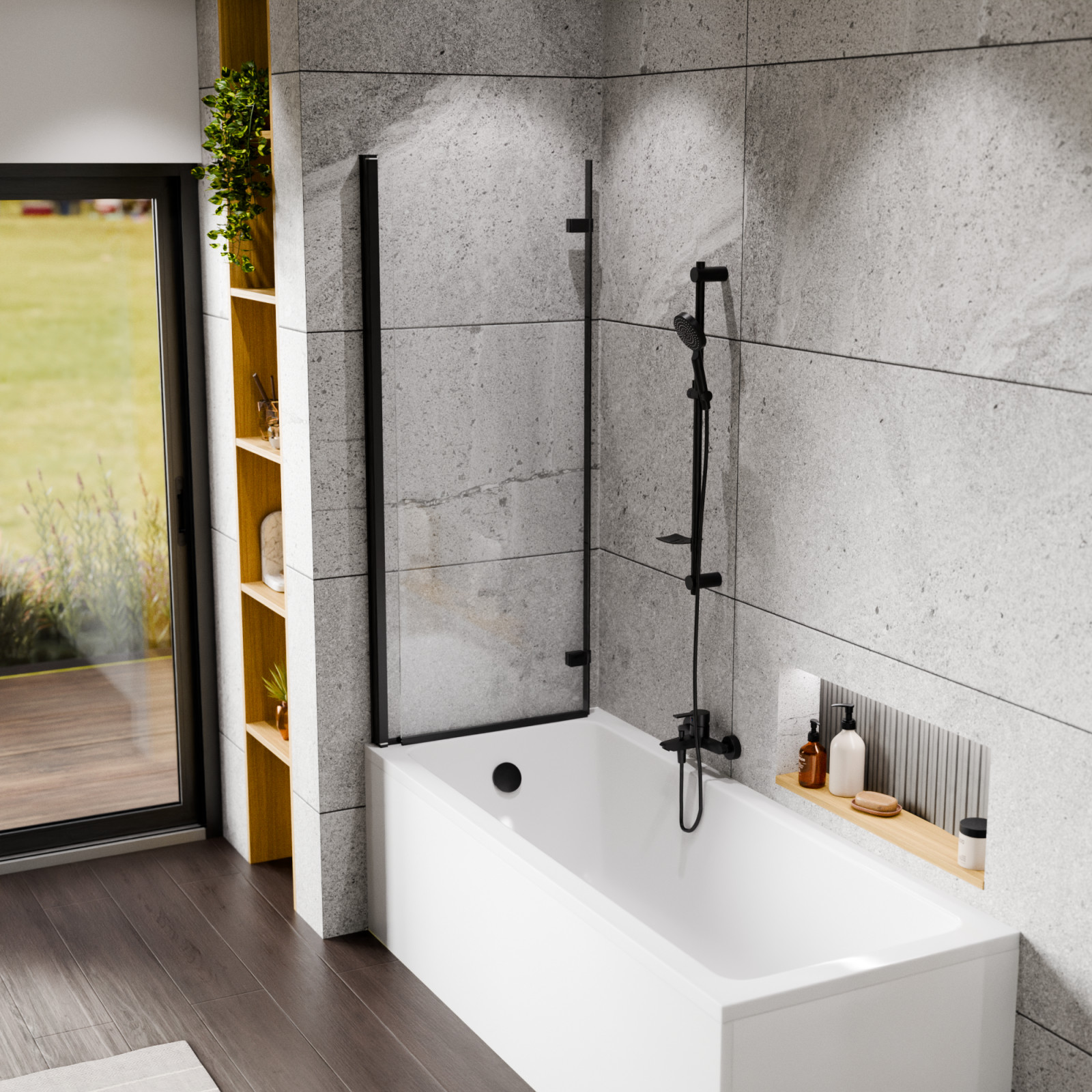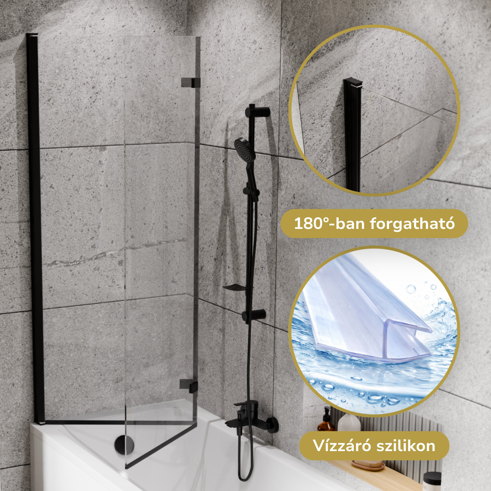 HD Axel Black 120x150 kihajtható 2 szárnyú kádparaván