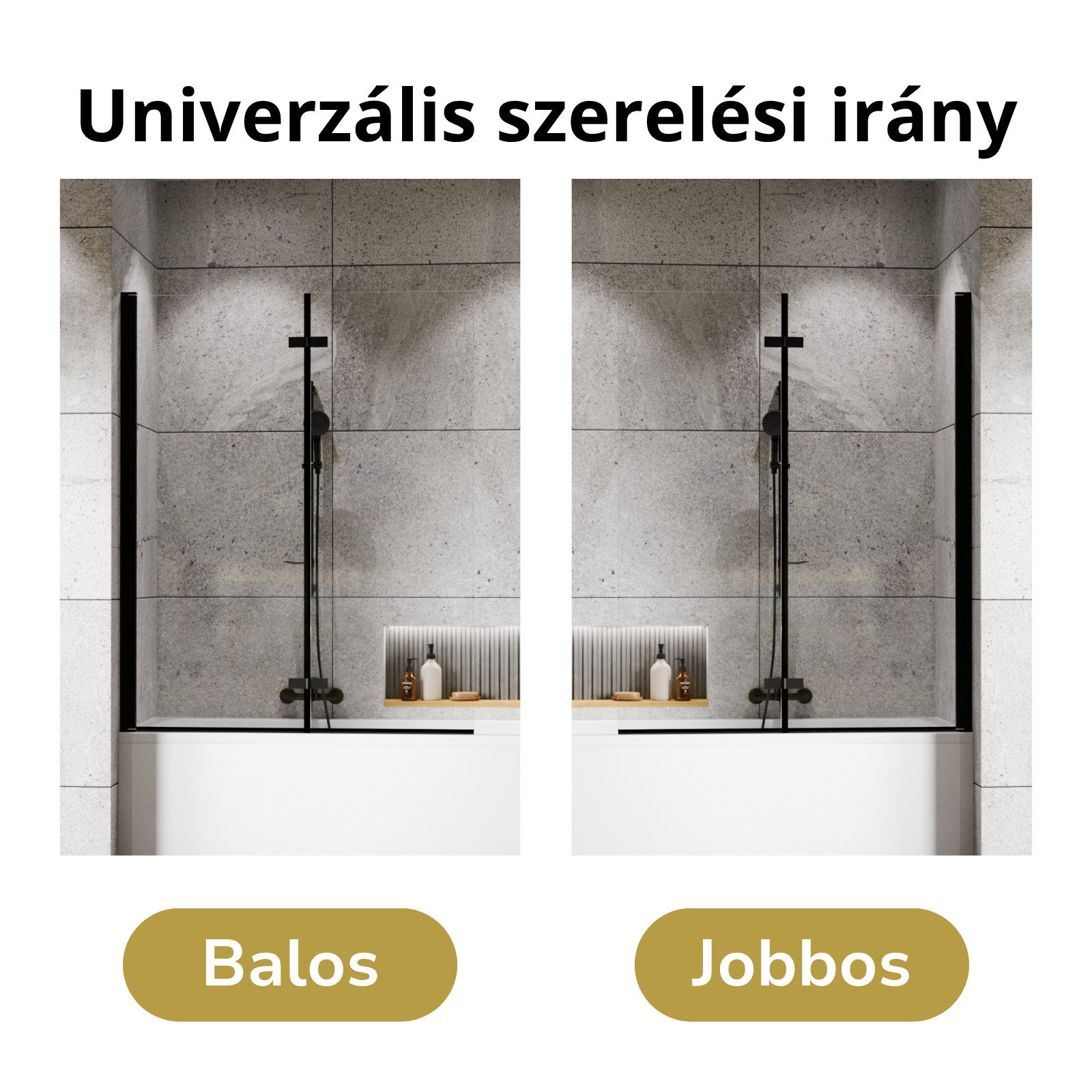 A kádparaván felszerelhetősége univerzális, miszerint, bármilyen irányban, bal vagy akár jobb oldalra is felszerelheti a terméket lehetőségei és igénye szerint.