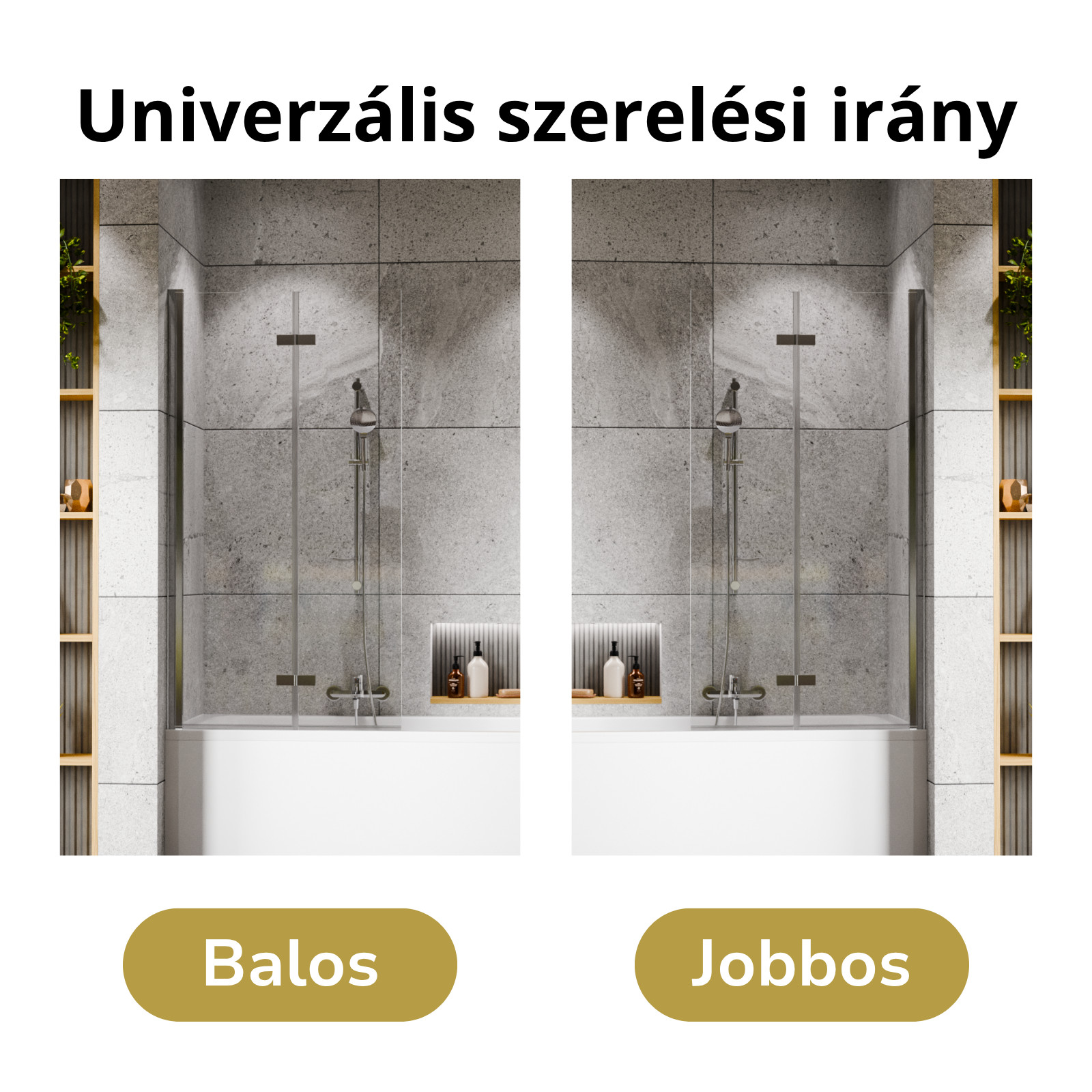 A kádparaván felszerelhetősége univerzális, miszerint, bármilyen irányban, bal vagy akár jobb oldalra is felszerelheti a terméket lehetőségei és igénye szerint.