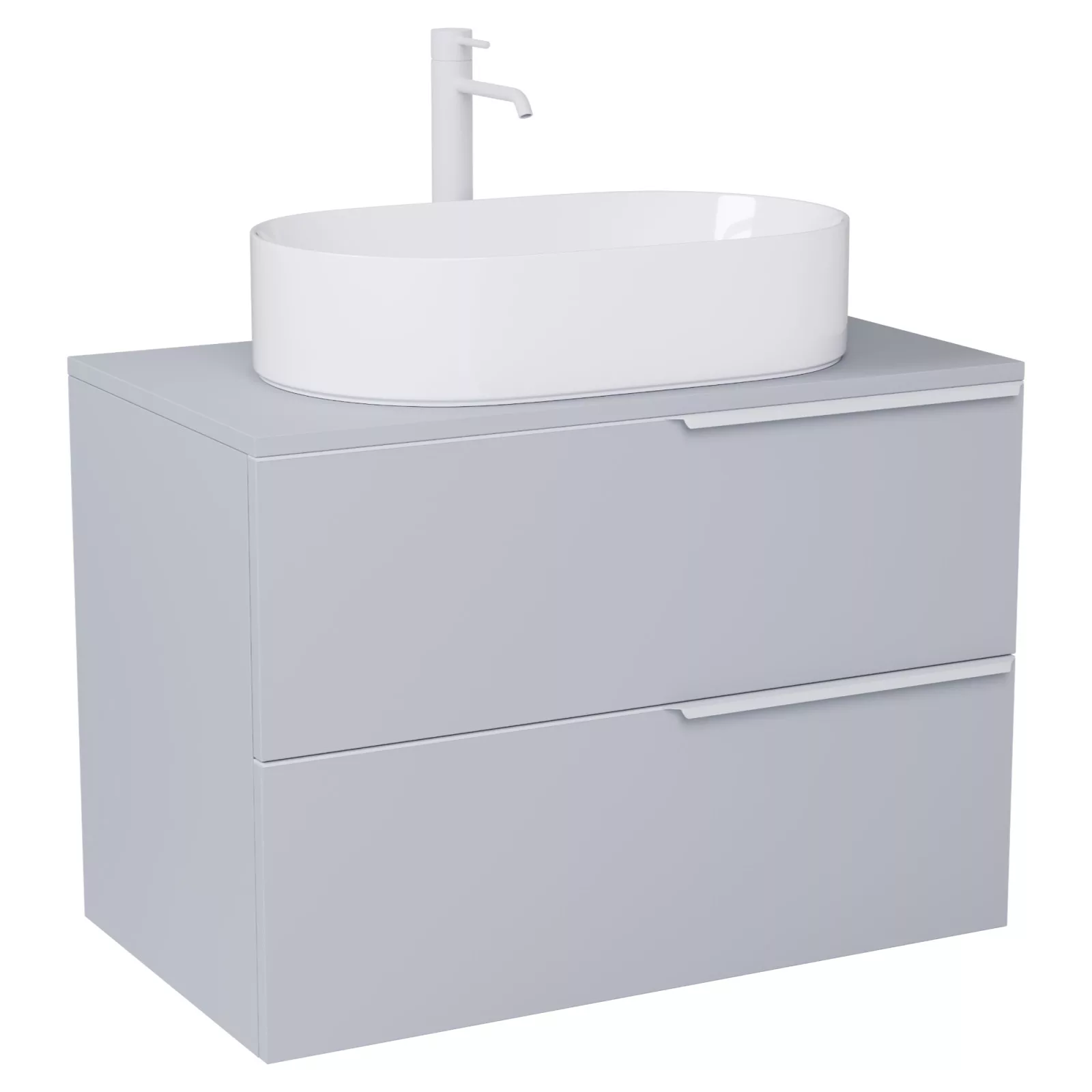 Carona Fume Grey 60 mosdószekrény pulttal, matt fehér fogantyúkkal