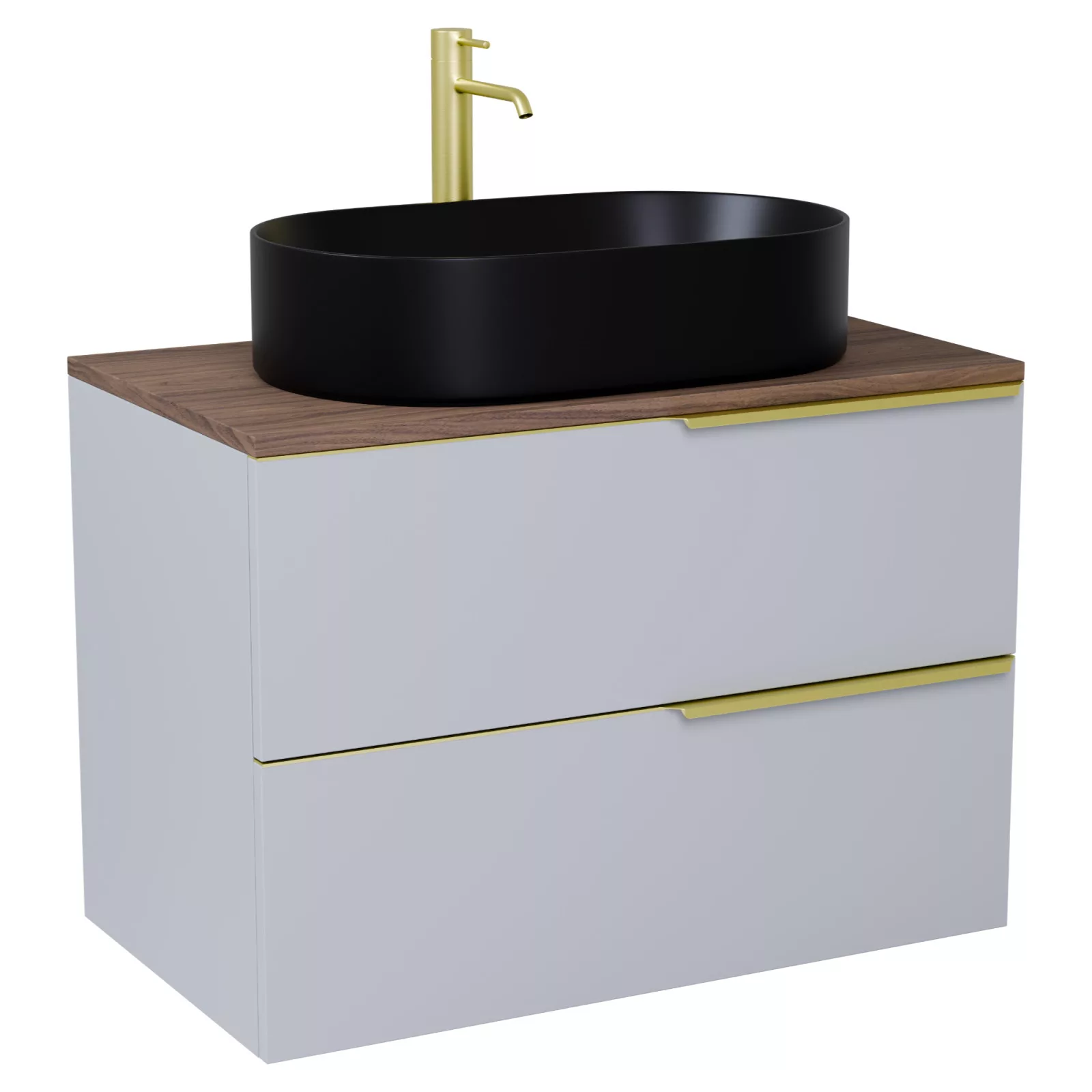 Carona Fume Grey 60 mosdószekrény pulttal, szálcsiszolt arany fogantyúkkal