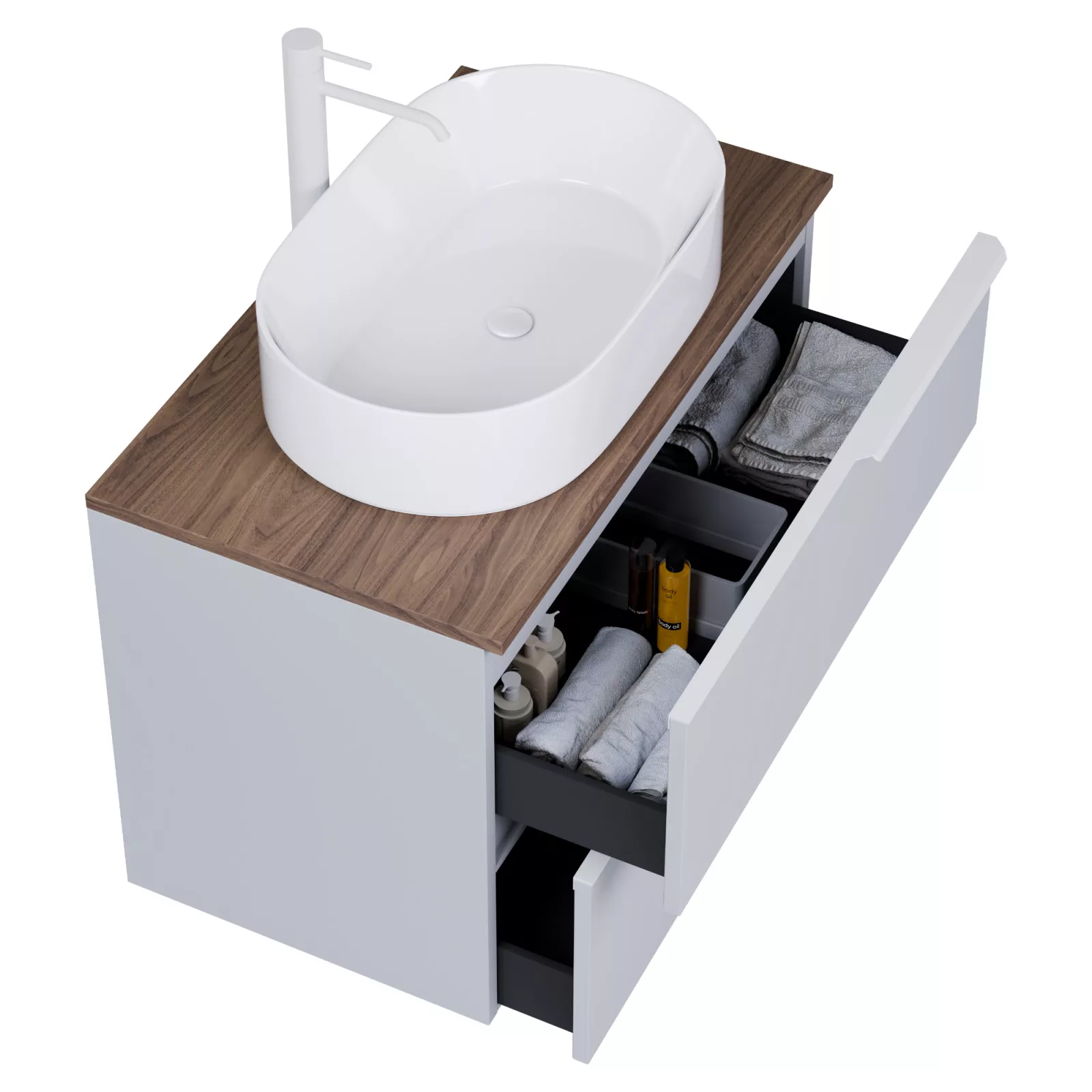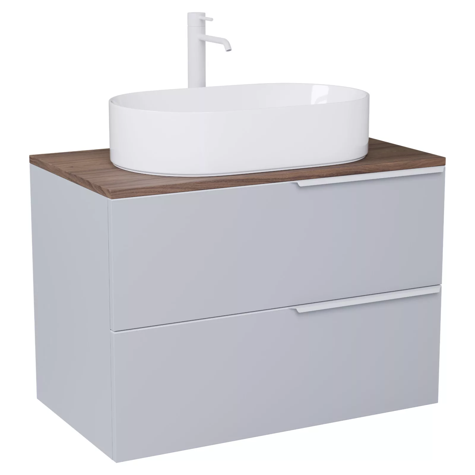 Carona Fume Grey 60 mosdószekrény pulttal, matt fehér fogantyúkkal