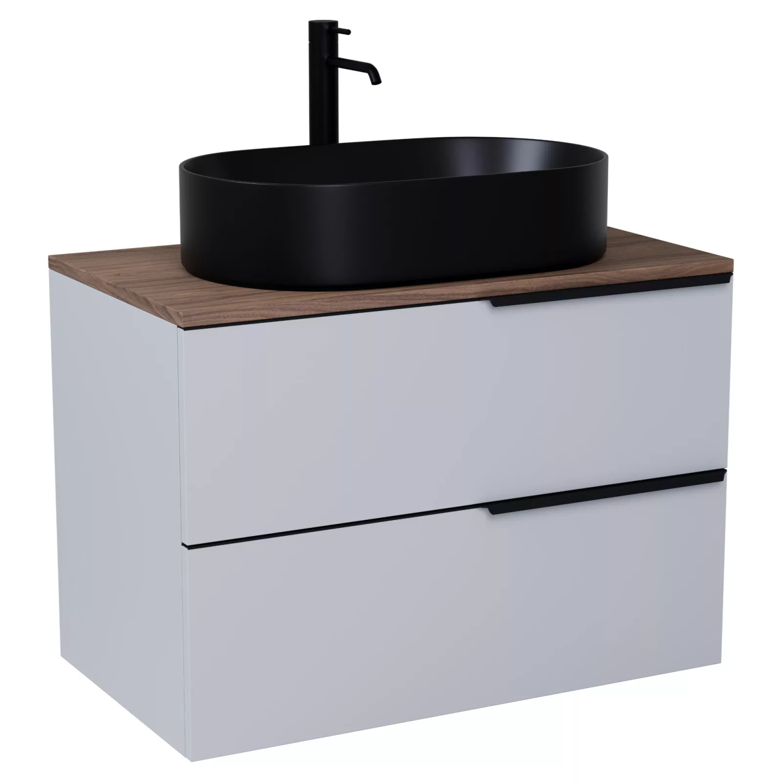 Carona Fume Grey 60 mosdószekrény pulttal, matt fekete fogantyúkkal