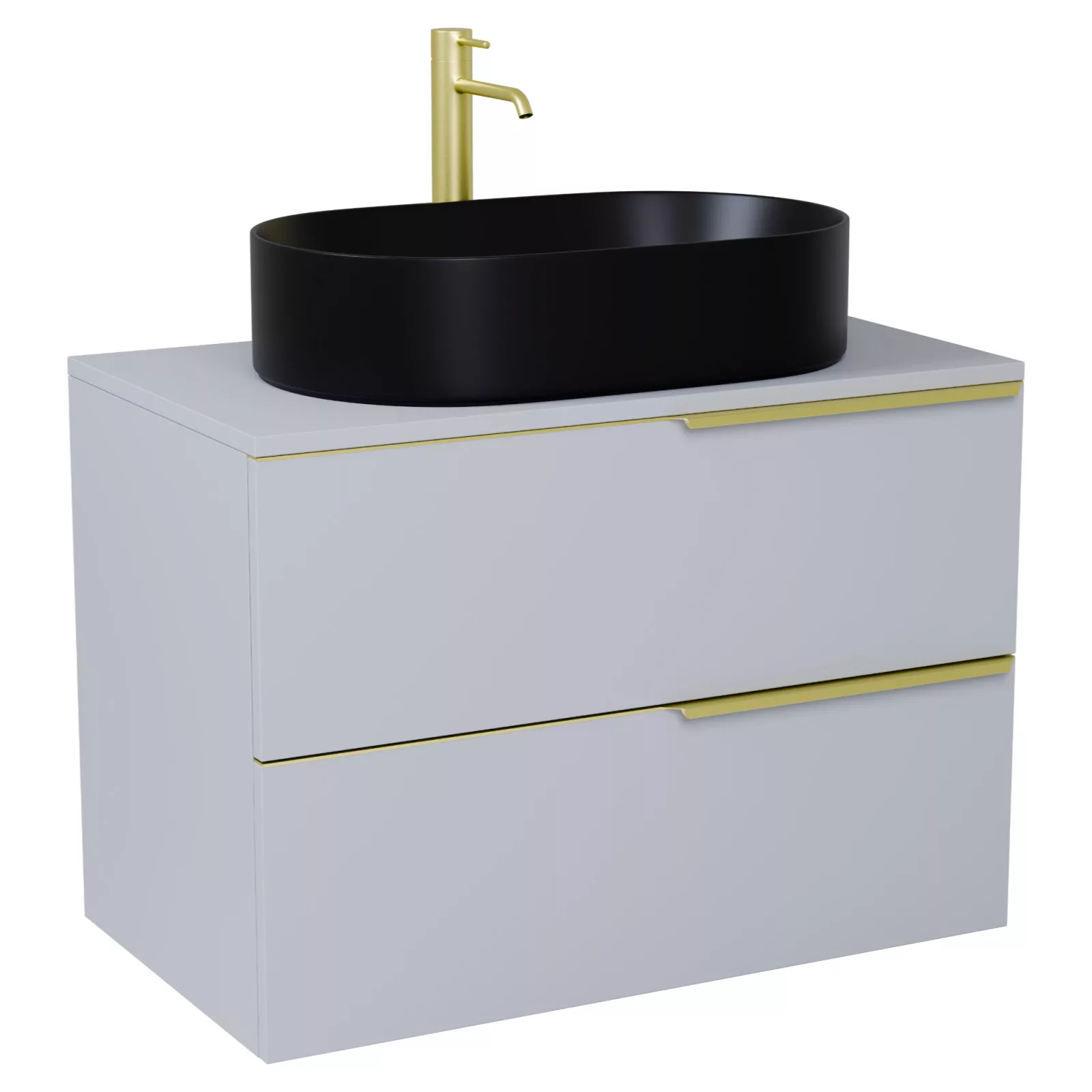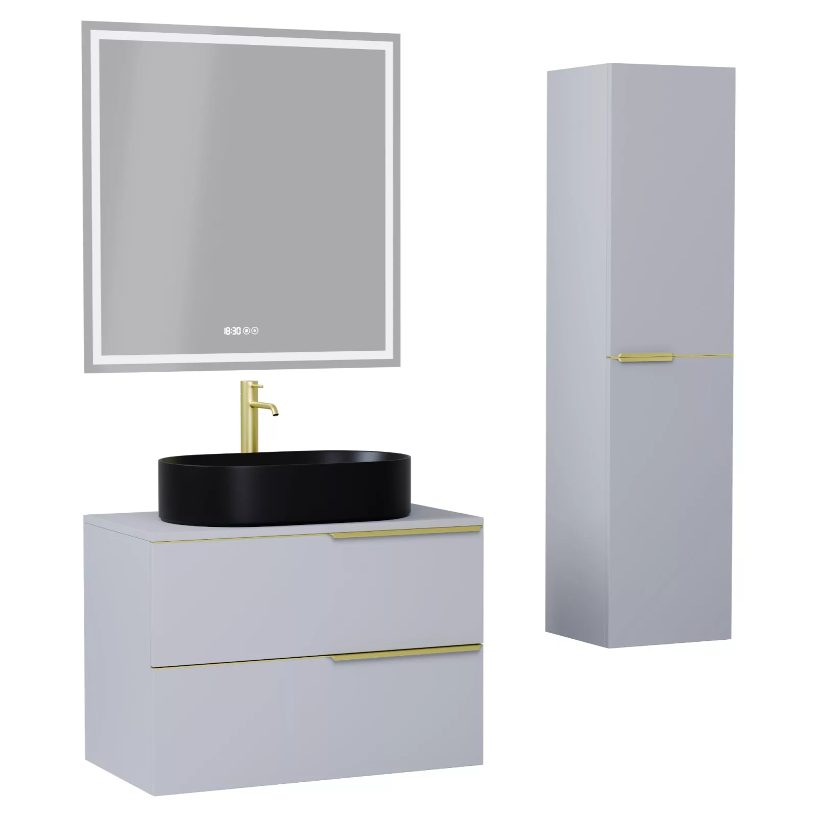 Carona Fume Grey 60 komplett fürdőszoba bútor szett, szálcsiszolt arany fogantyúkkal