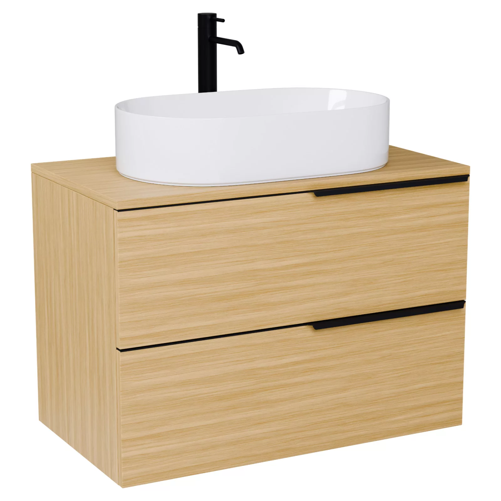 Carona Hickory 60 mosdószekrény pulttal, matt fekete fogantyúkkal
