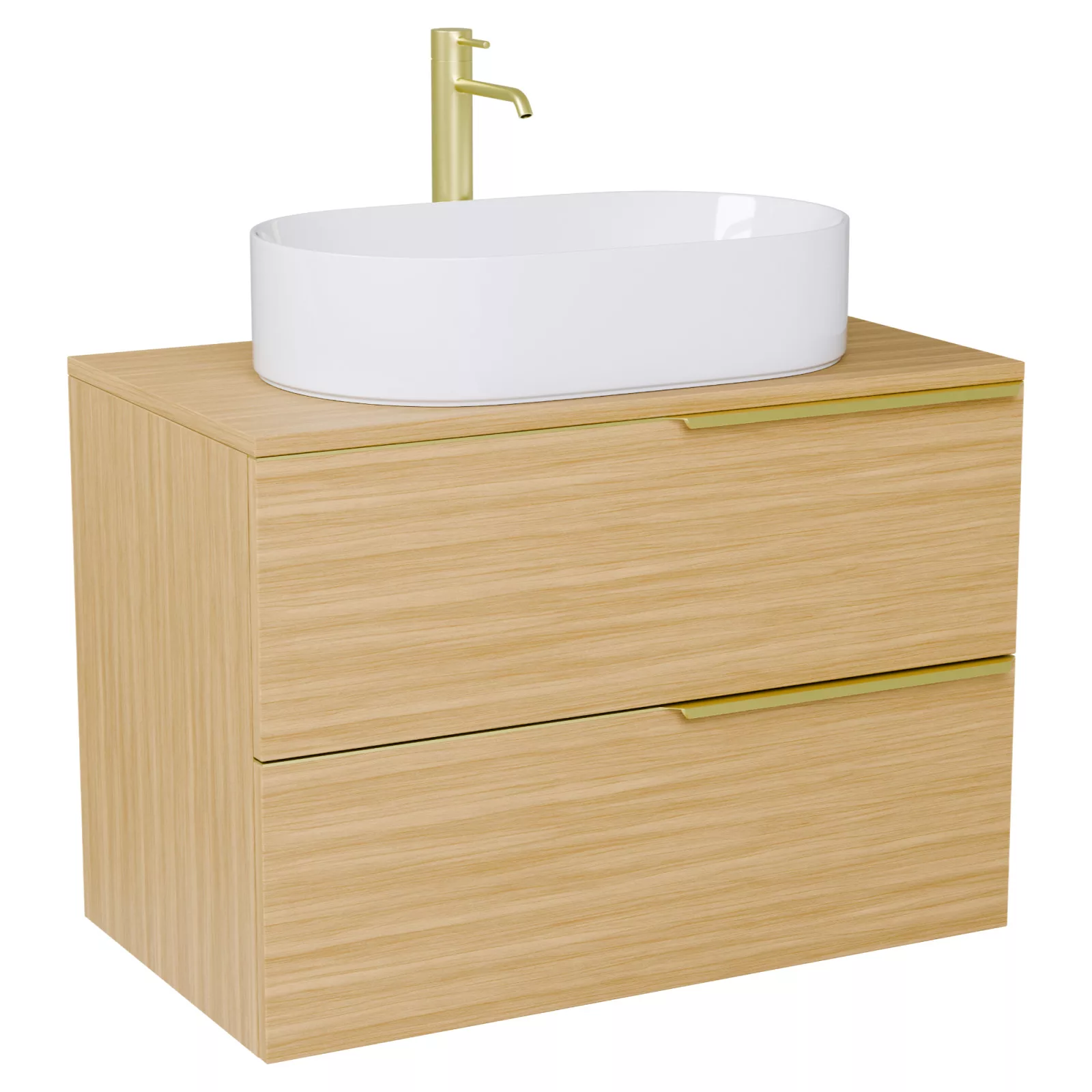 Carona Hickory 60 komplett fürdőszoba bútor, szálcsiszolt arany fogantyúkkal