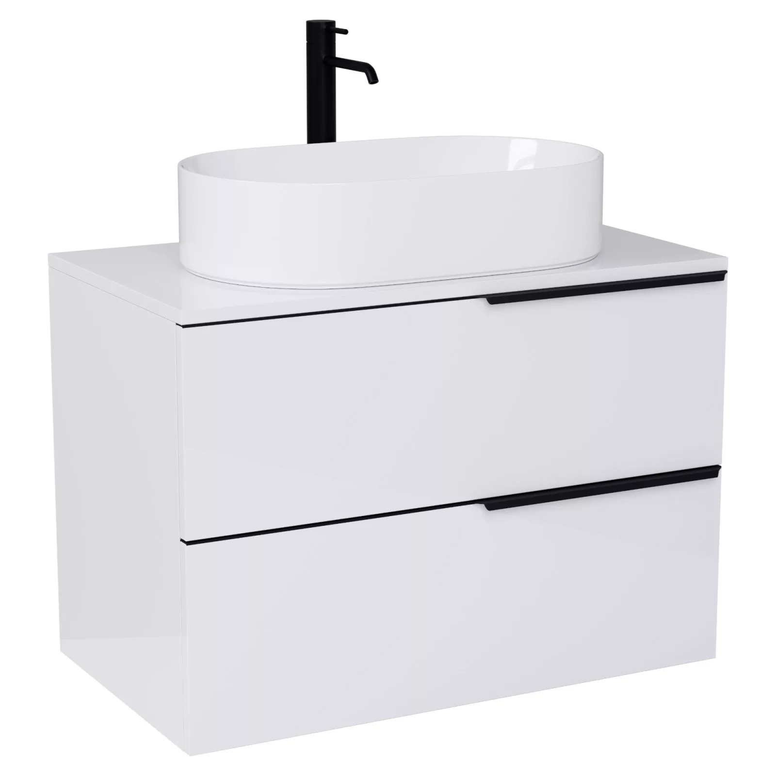 Carona Lacquer White 60 mosdószekrény pulttal, matt fekete fogantyúkkal