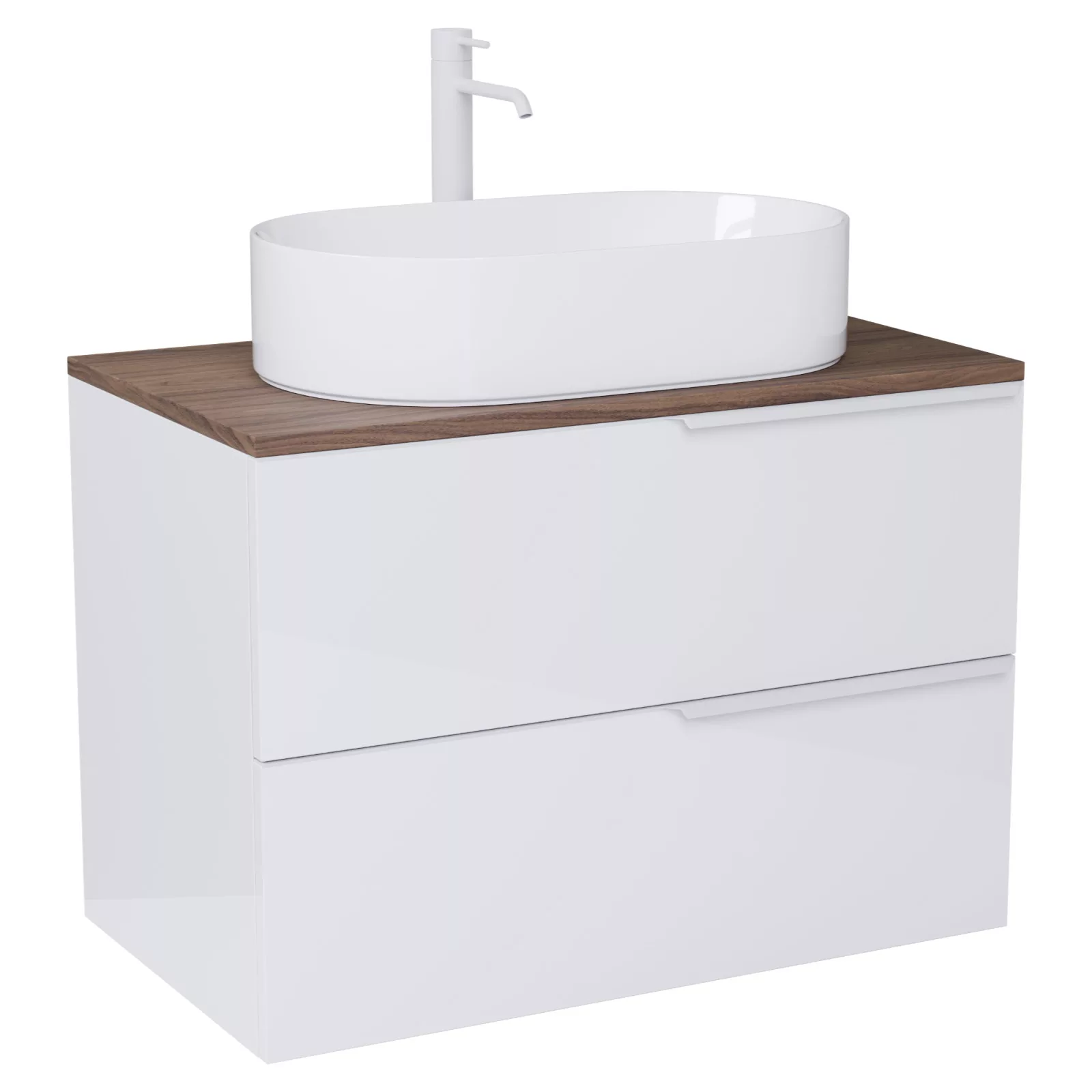 Carona Lacquer White 60 mosdószekrény pulttal, matt fehér fogantyúkkal