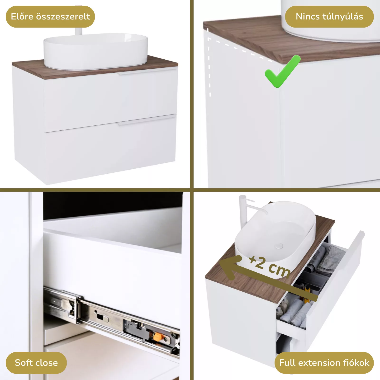 A bútort összeszerelve szállítjuk ki, így Önnek csak a mosdót és a fiók frontot kell ráhelyeznie!
