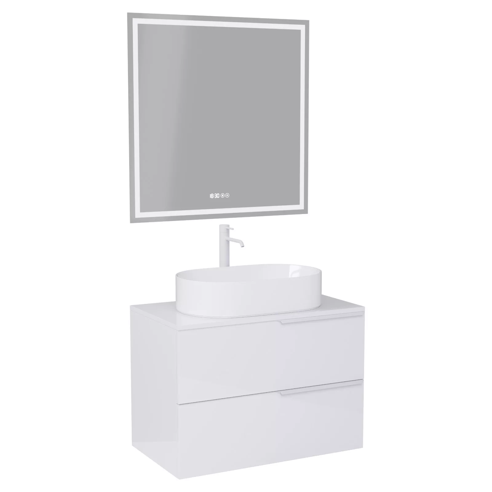 Carona Lacquer White 60 komplett fürdőszoba bútor, matt fehér fogantyúkkal
