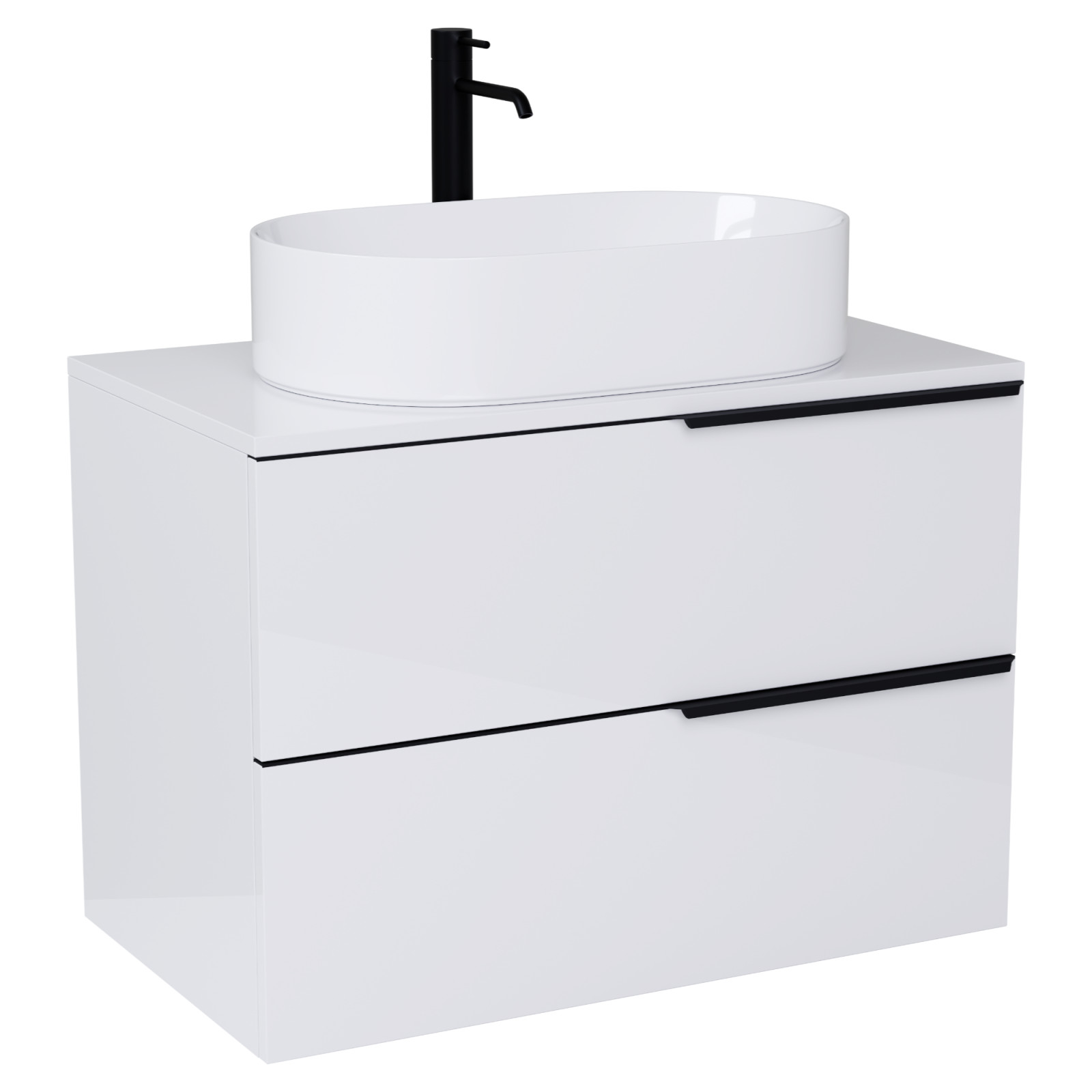 Carona Lacquer White 80 mosdószekrény pulttal, matt fekete fogantyúkkal