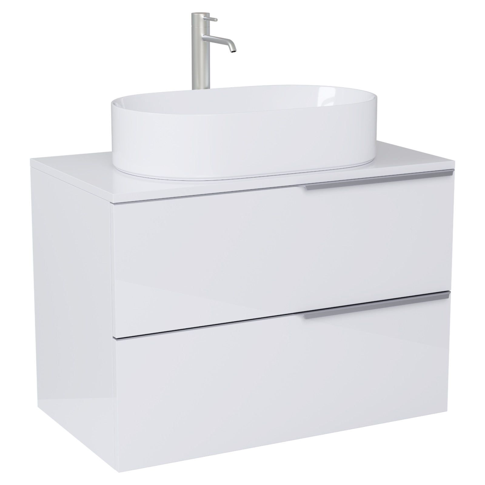 HD Carona Lacquer White 80 fali mosdószekrény fényes fehér mosdópulttal és szálcsiszolt króm fogantyúkkal