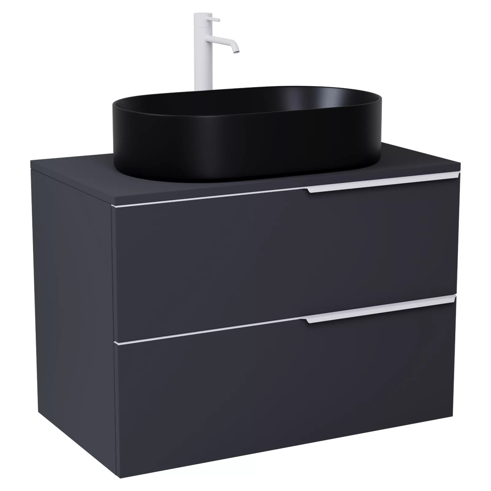 Carona Matt Antracit 60 mosdószekrény pulttal, matt fehér fogantyúkkal