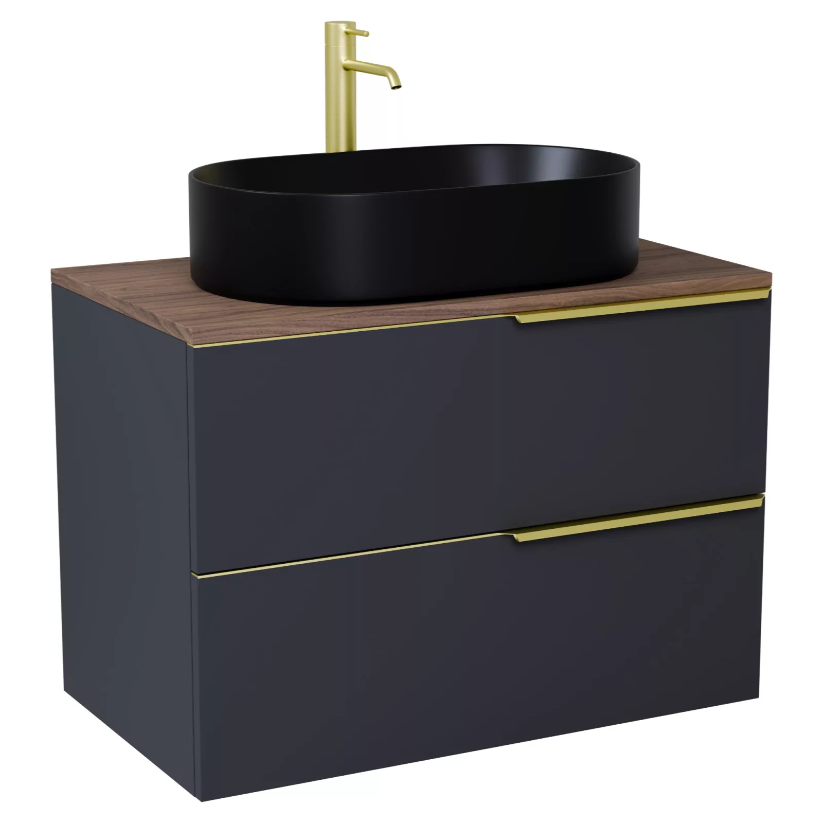 Carona Matt Antracit 60 mosdószekrény pulttal, szálcsiszolt arany fogantyúkkal