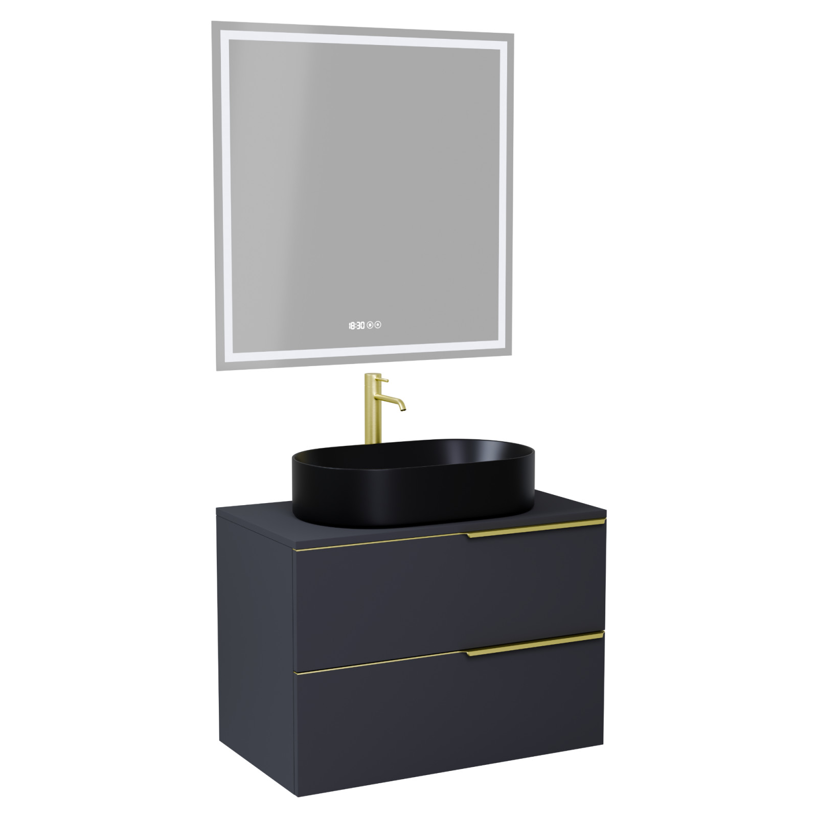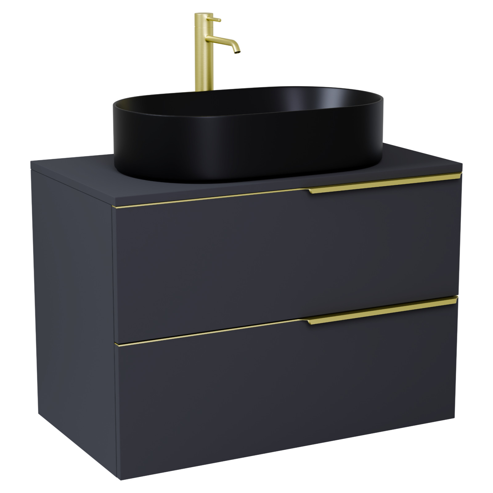 Carona Matt Antracit 60 komplett fürdőszoba bútor, szálcsiszolt arany fogantyúkkal