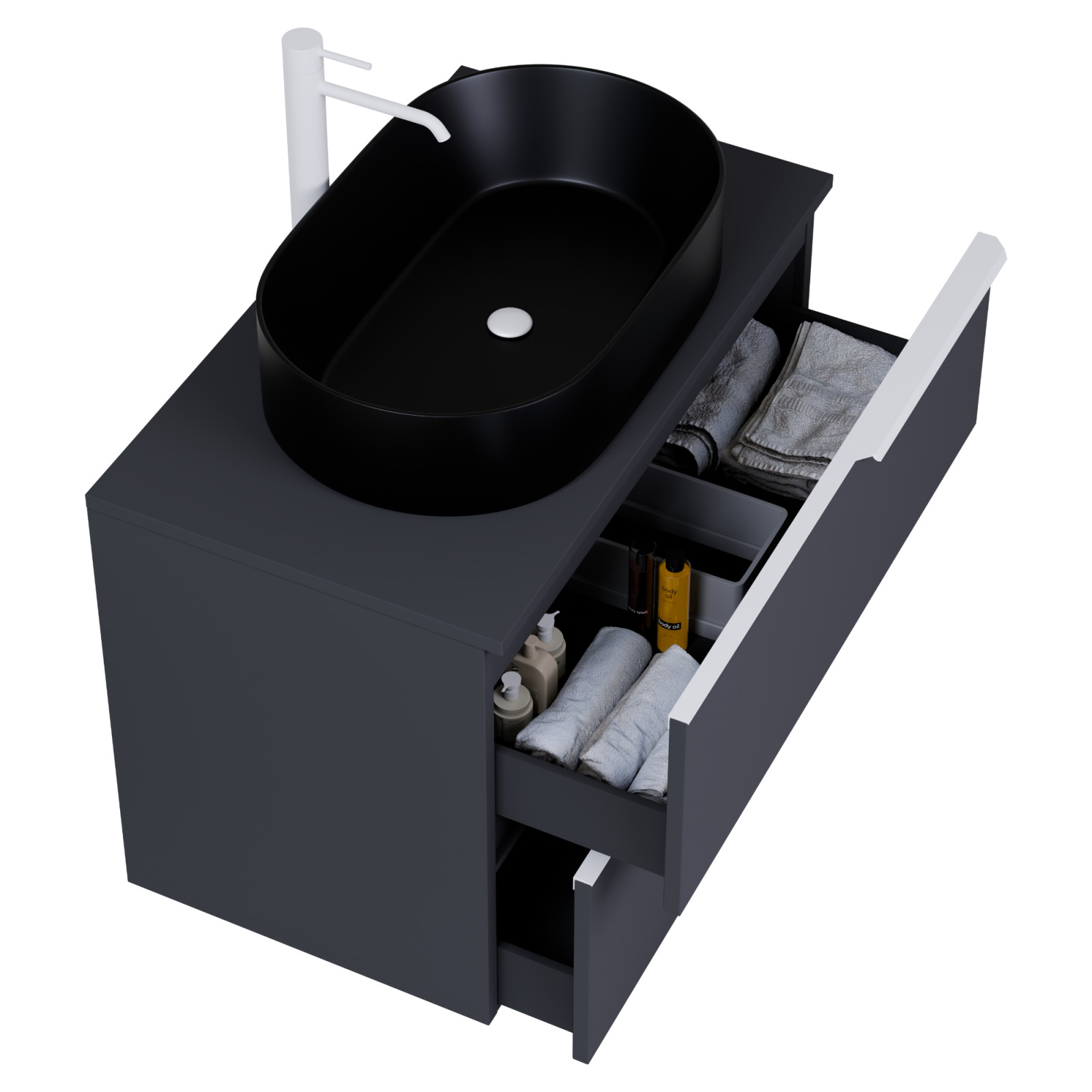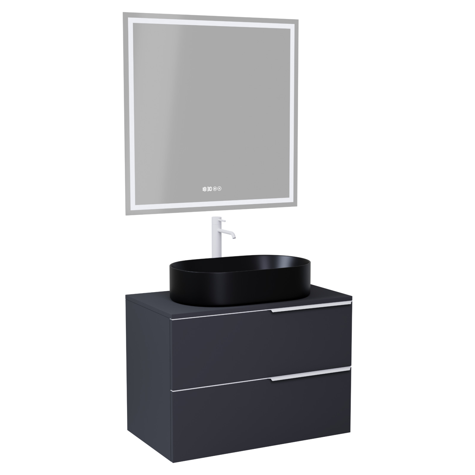 HD Carona Matt Antracit 60 komplett fürdőszoba bútor fali mosdószekrénnyel, matt fehér fogantyúkkal, antracit mosdópulttal és tükörrel