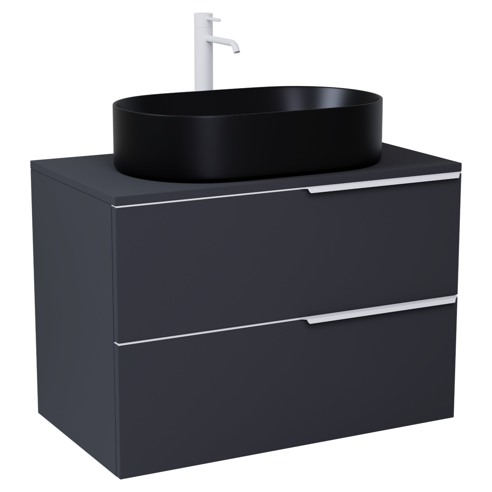 Carona Matt Antracit 60 komplett fürdőszoba bútor, matt fehér fogantyúkkal