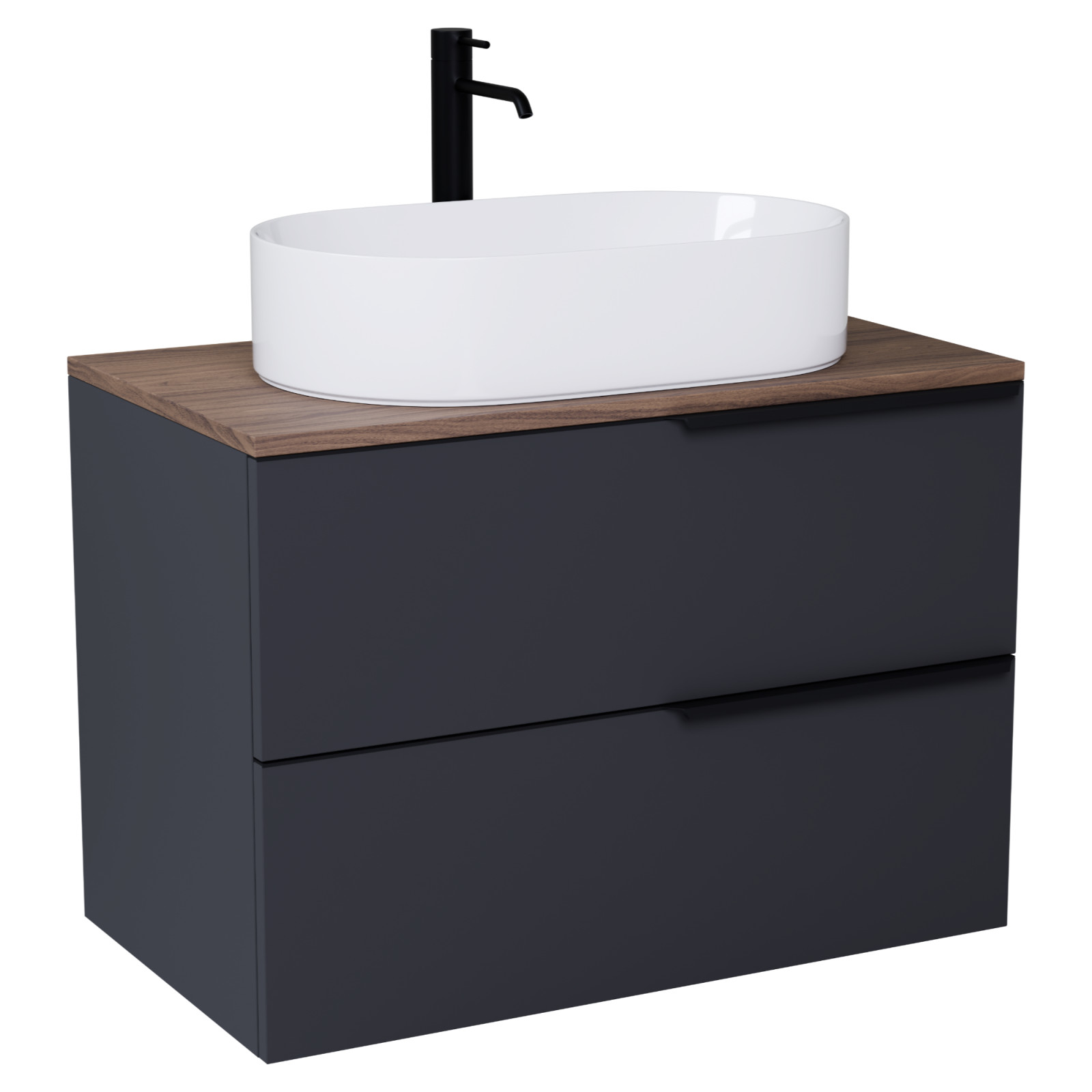 Carona Matt Antracit 80 mosdószekrény pulttal, matt fekete fogantyúkkal