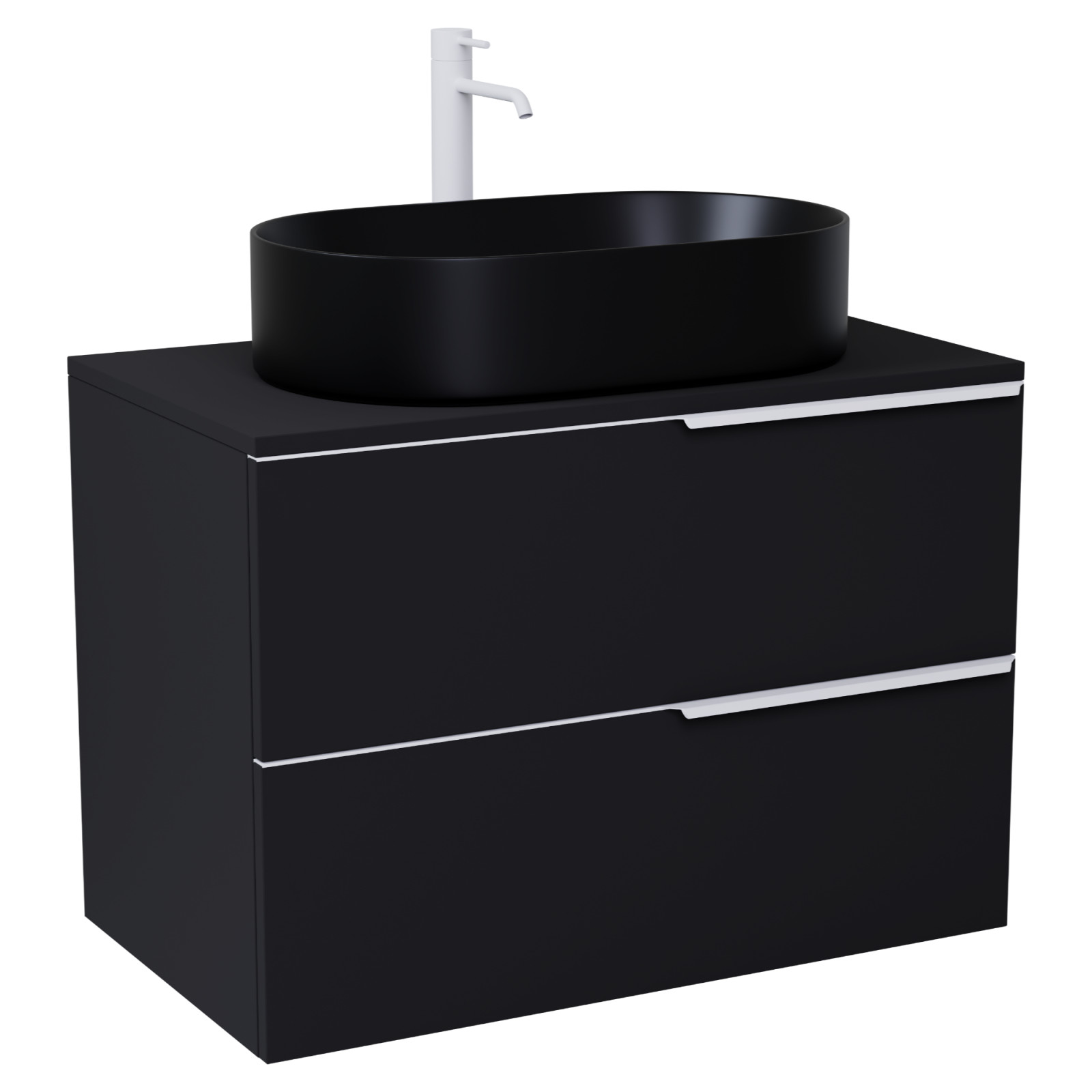 Carona Matt Black 60 mosdószekrény pulttal, matt fehér fogantyúkkal