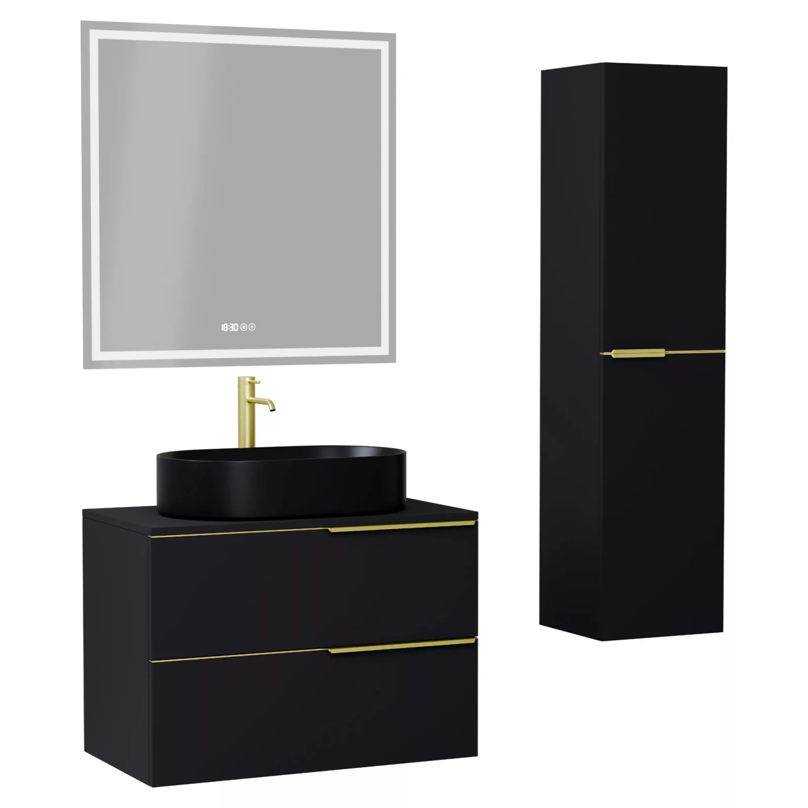 Carona Matt Black 60 komplett fürdőszoba bútor szett, szálcsiszolt arany fogantyúkkal