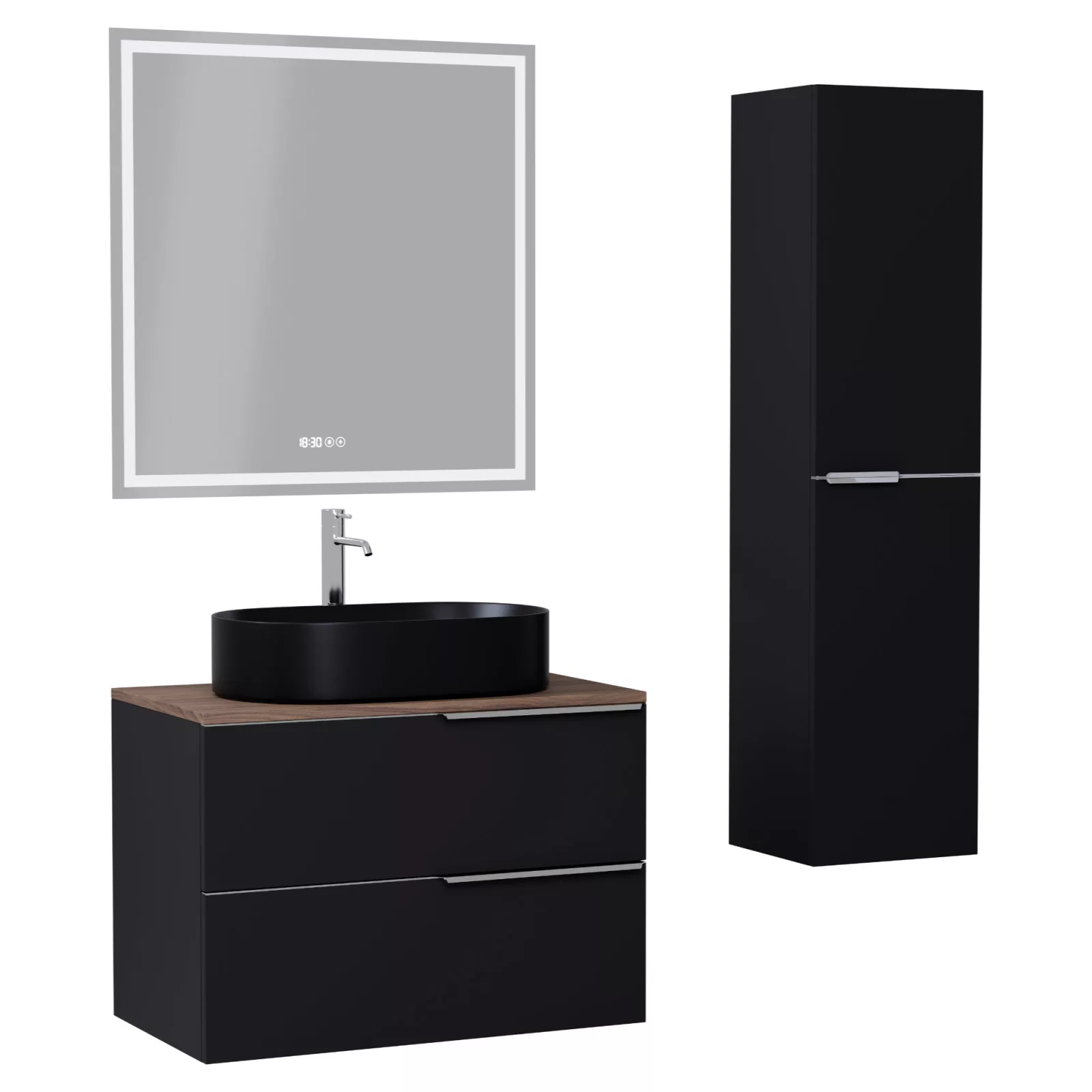 Carona Matt Black 60 komplett fürdőszoba bútor szett, matt fekete fogantyúkkal