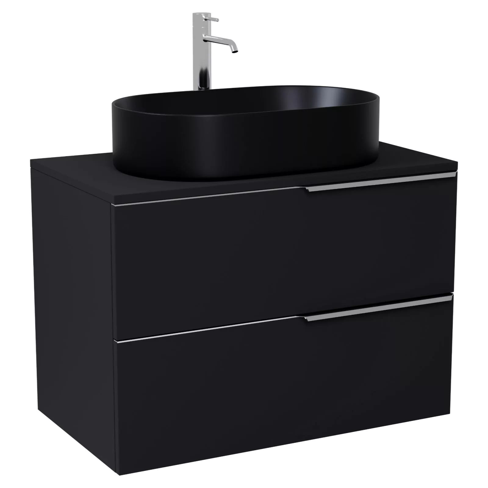 Carona Matt Black 80 mosdószekrény pulttal, matt fekete fogantyúkkal