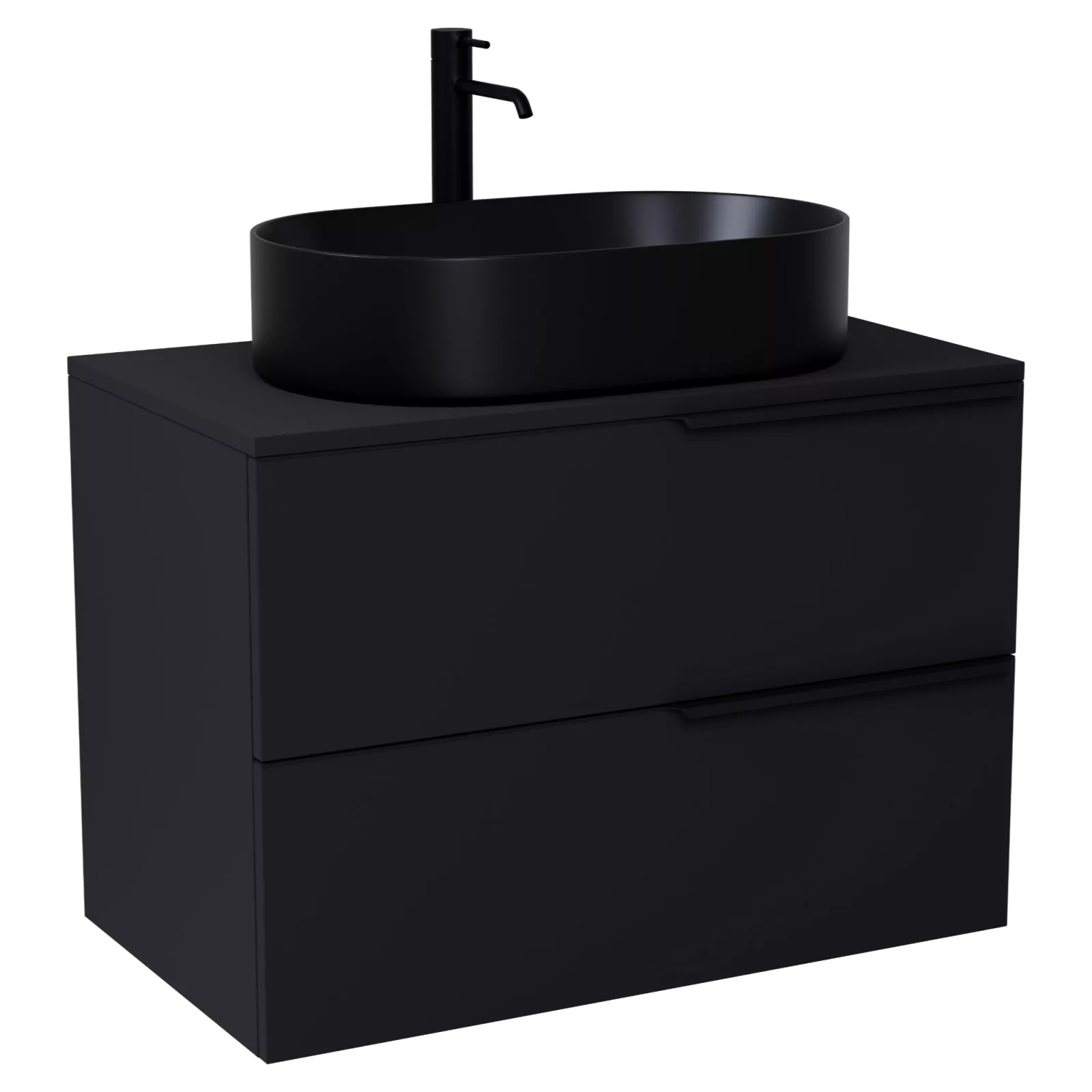 Carona Matt Black 80 mosdószekrény pulttal, matt fekete fogantyúkkal
