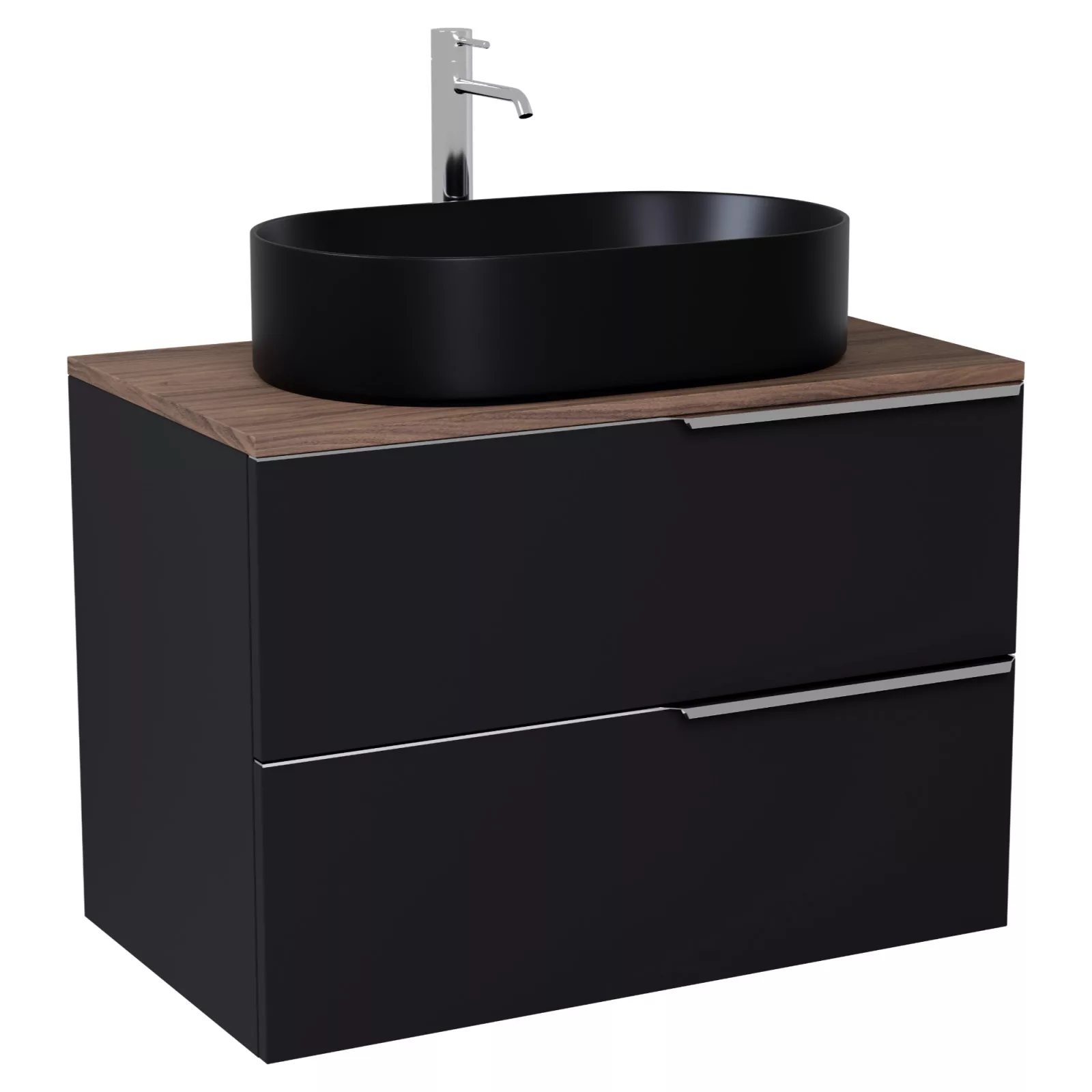 Carona Matt Black 80 mosdószekrény pulttal, matt fekete fogantyúkkal