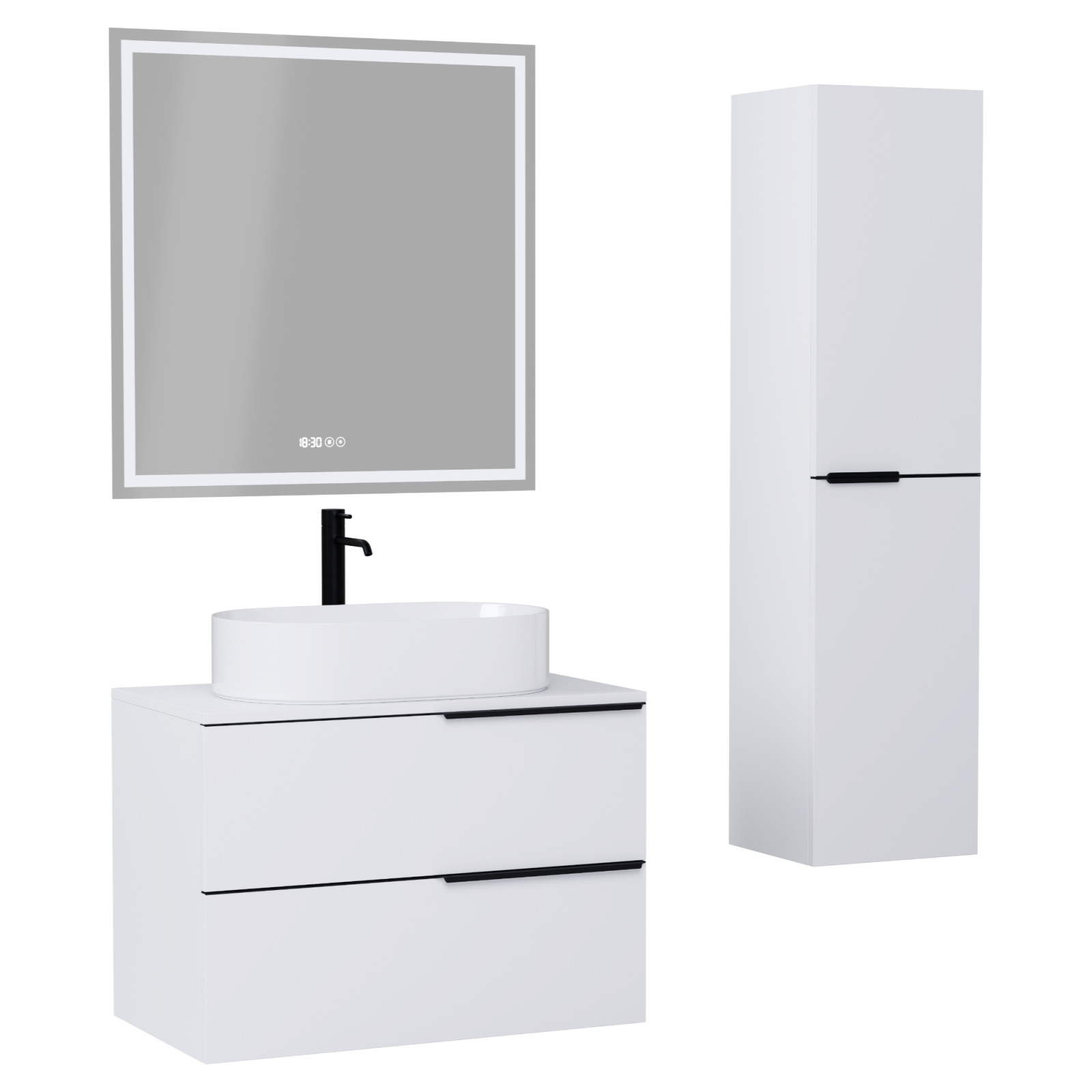 Carona Matt White 60 komplett fürdőszoba bútor szett, matt fekete fogantyúkkal