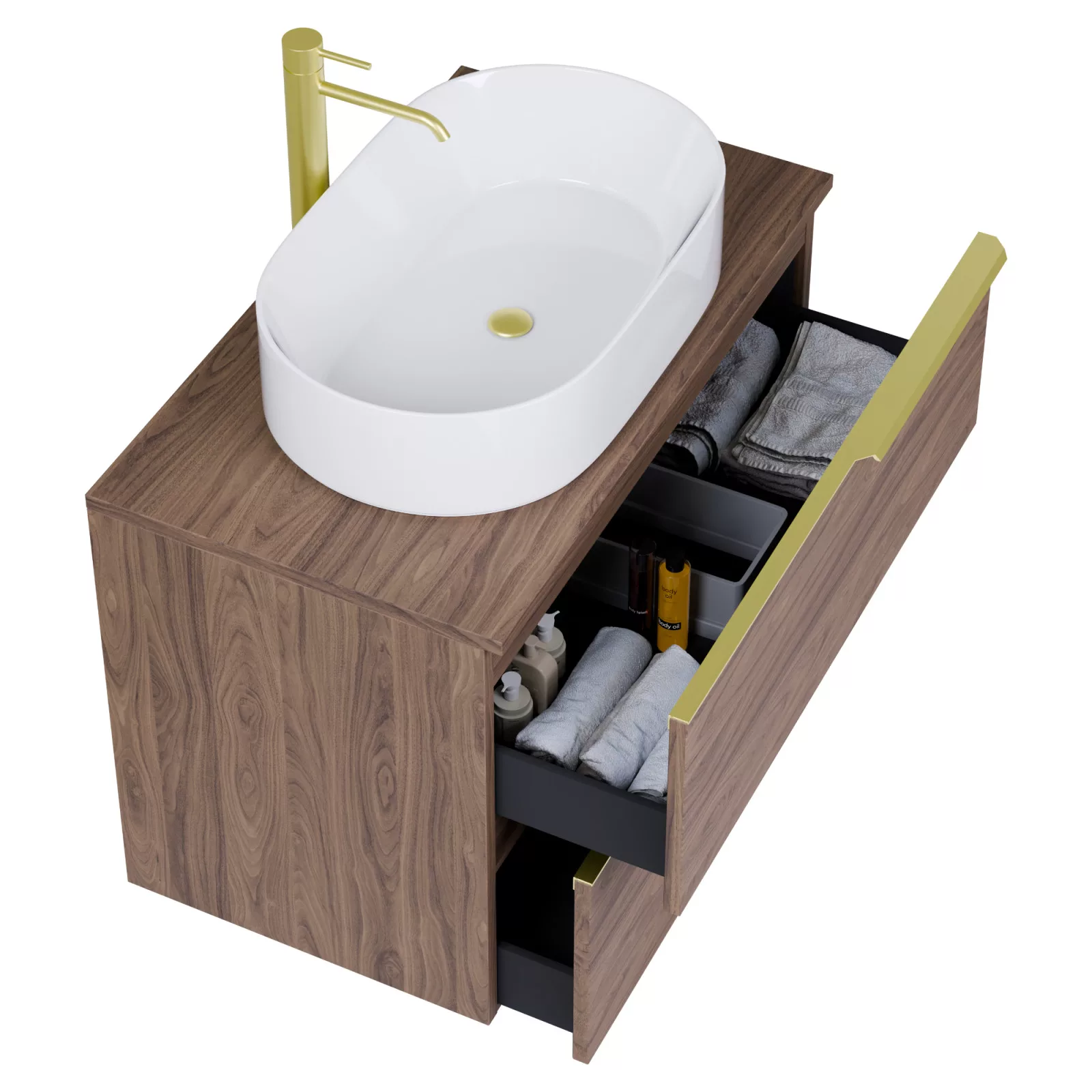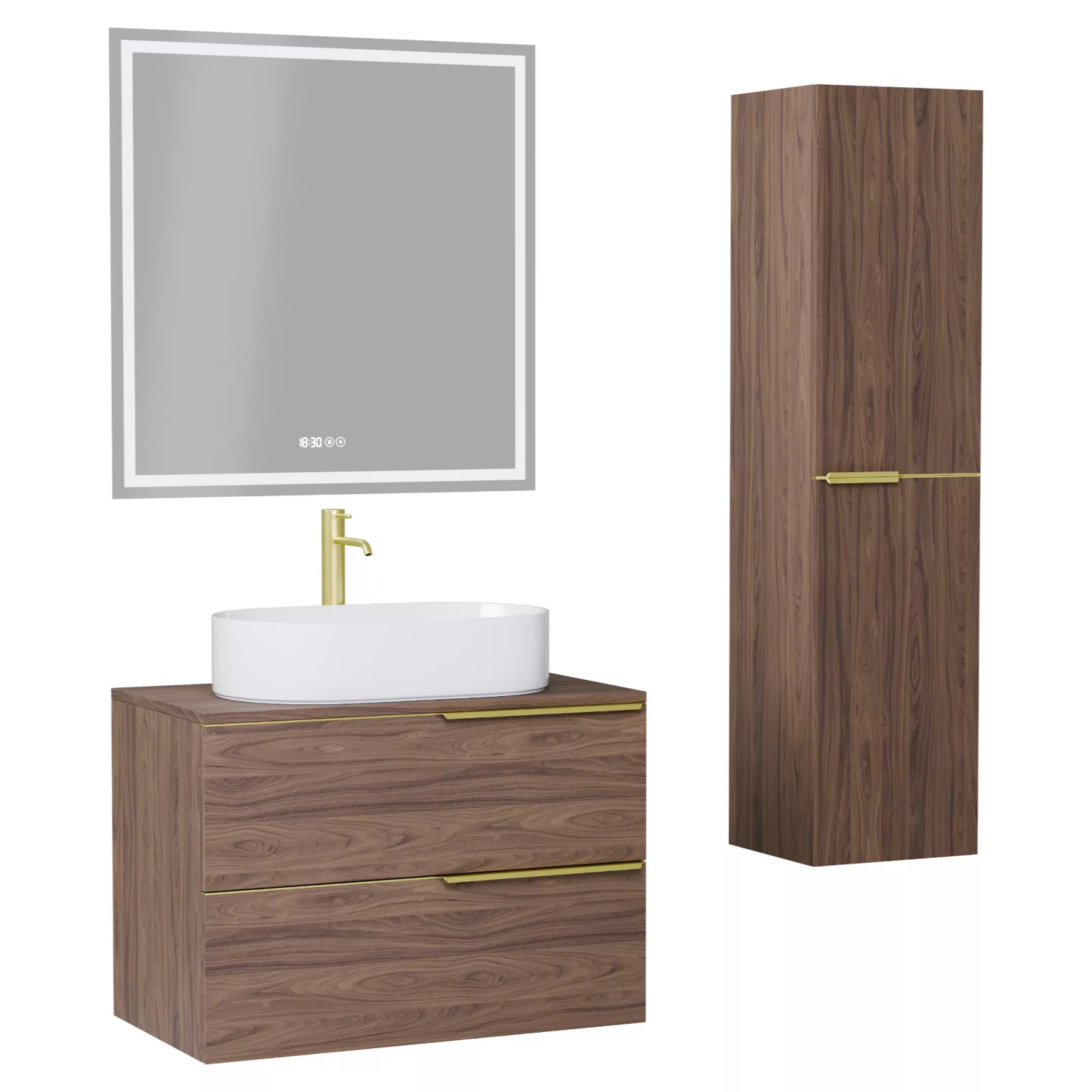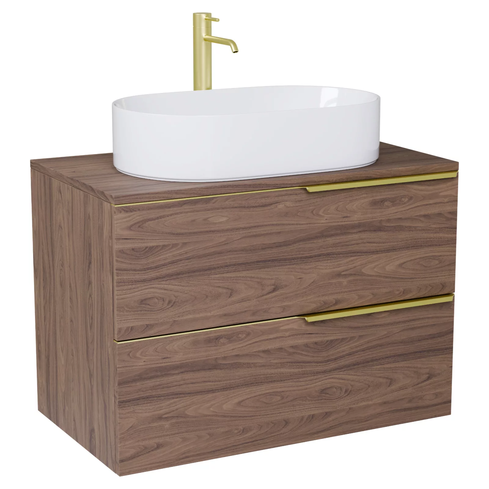 Carona Oak 60 komplett fürdőszoba bútor szett, szálcsiszolt arany fogantyúkkal
