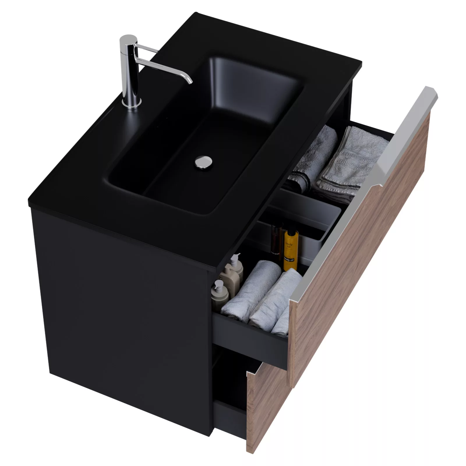 Cremona Black-Oak 80 komplett fürdőszoba bútor szett, matt fekete fogantyúkkal