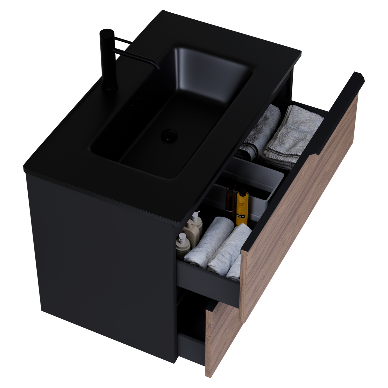 Cremona Black-Oak 80 komplett fürdőszoba bútor szett, matt fekete fogantyúkkal