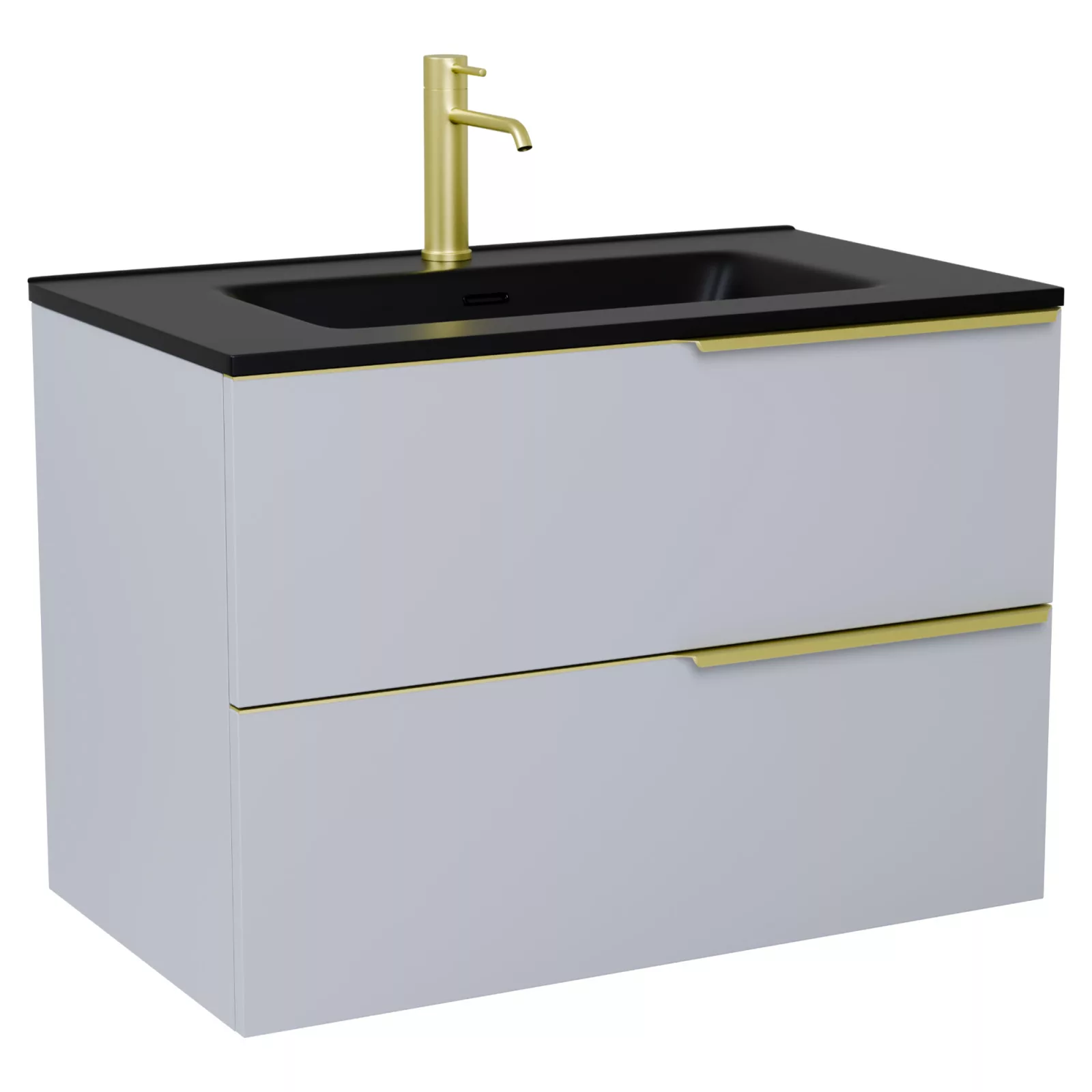 HD Cremona Fume Grey 60 fali mosdószekrény szálcsiszolt arany fogantyúkkal és matt fekete slim mosdóval
