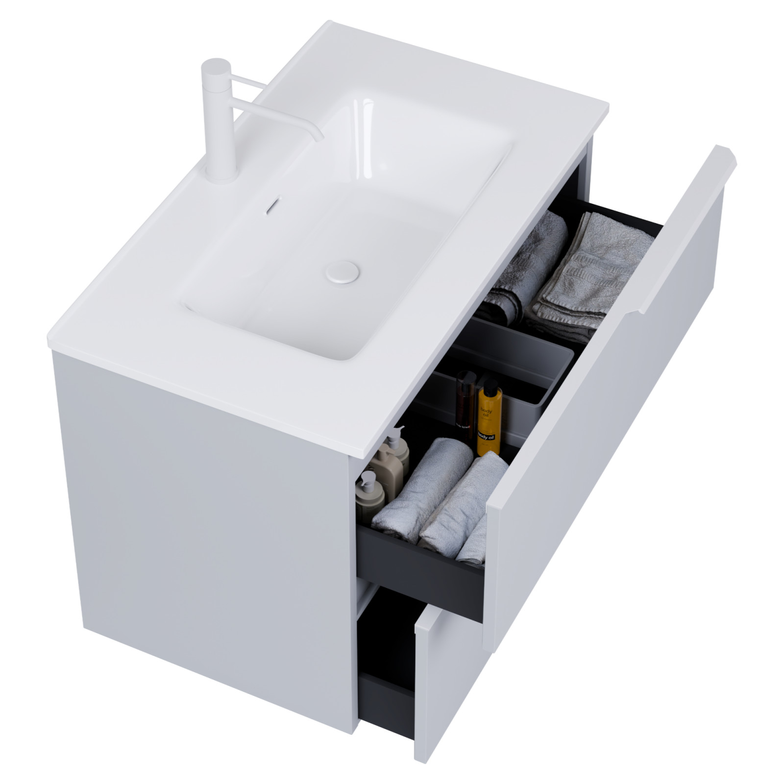 Cremona Fume Grey 80 komplett fürdőszoba bútor szett, matt fehér fogantyúkkal