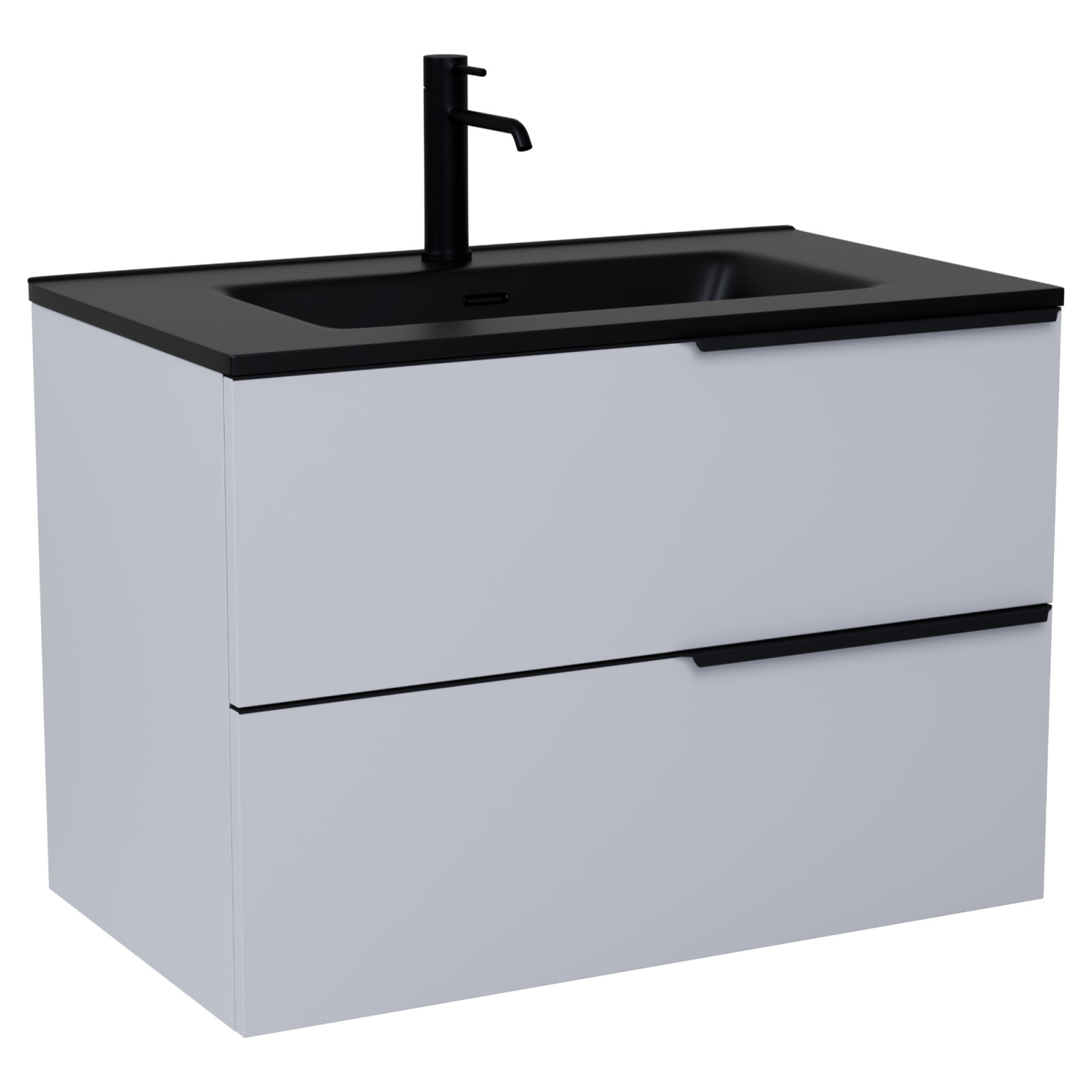Cremona Fume Grey 80 komplett fürdőszoba bútor szett, matt fekete fogantyúkkal