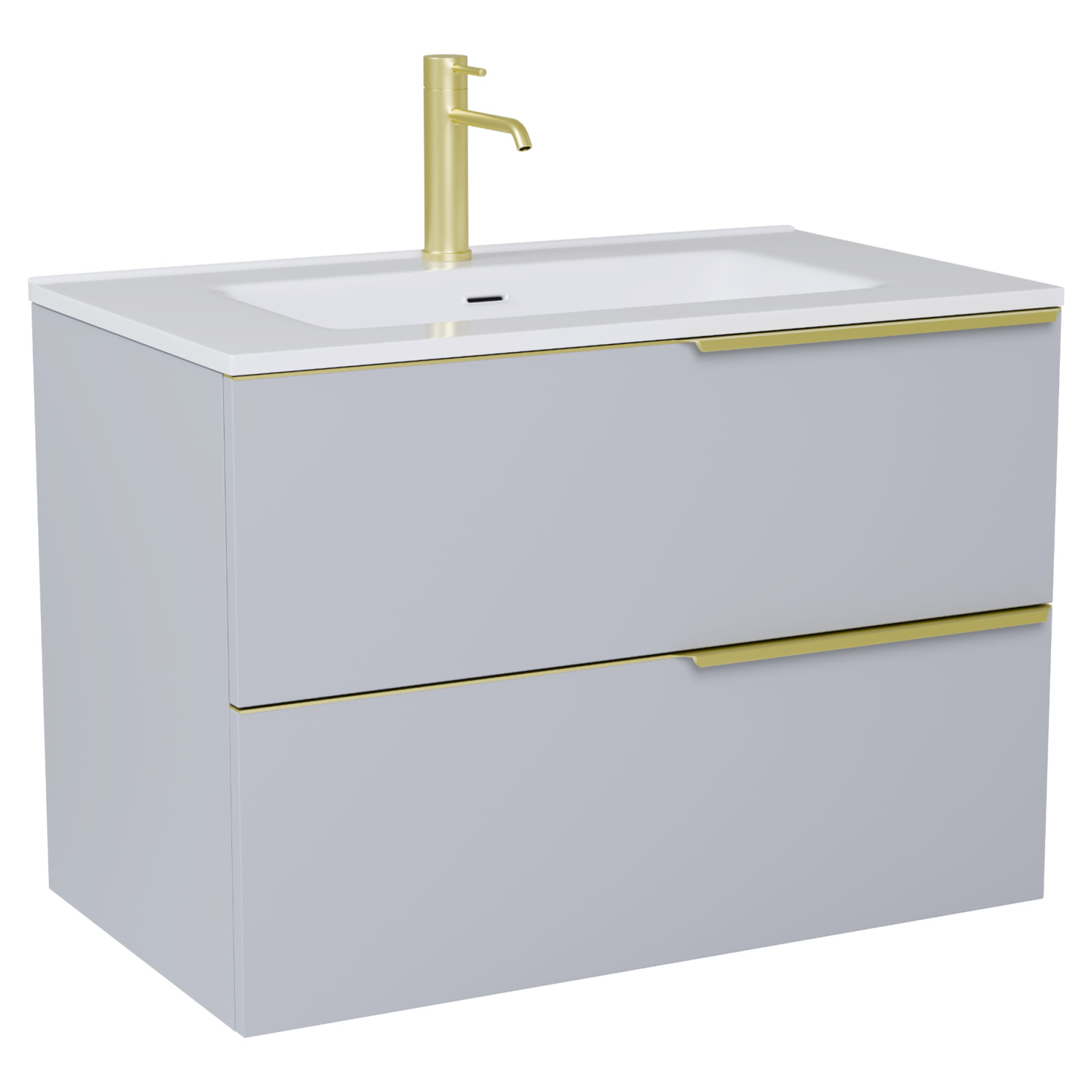 Cremona Fume Grey 80 komplett fürdőszoba bútor szett, szálcsiszolt arany fogantyúkkal