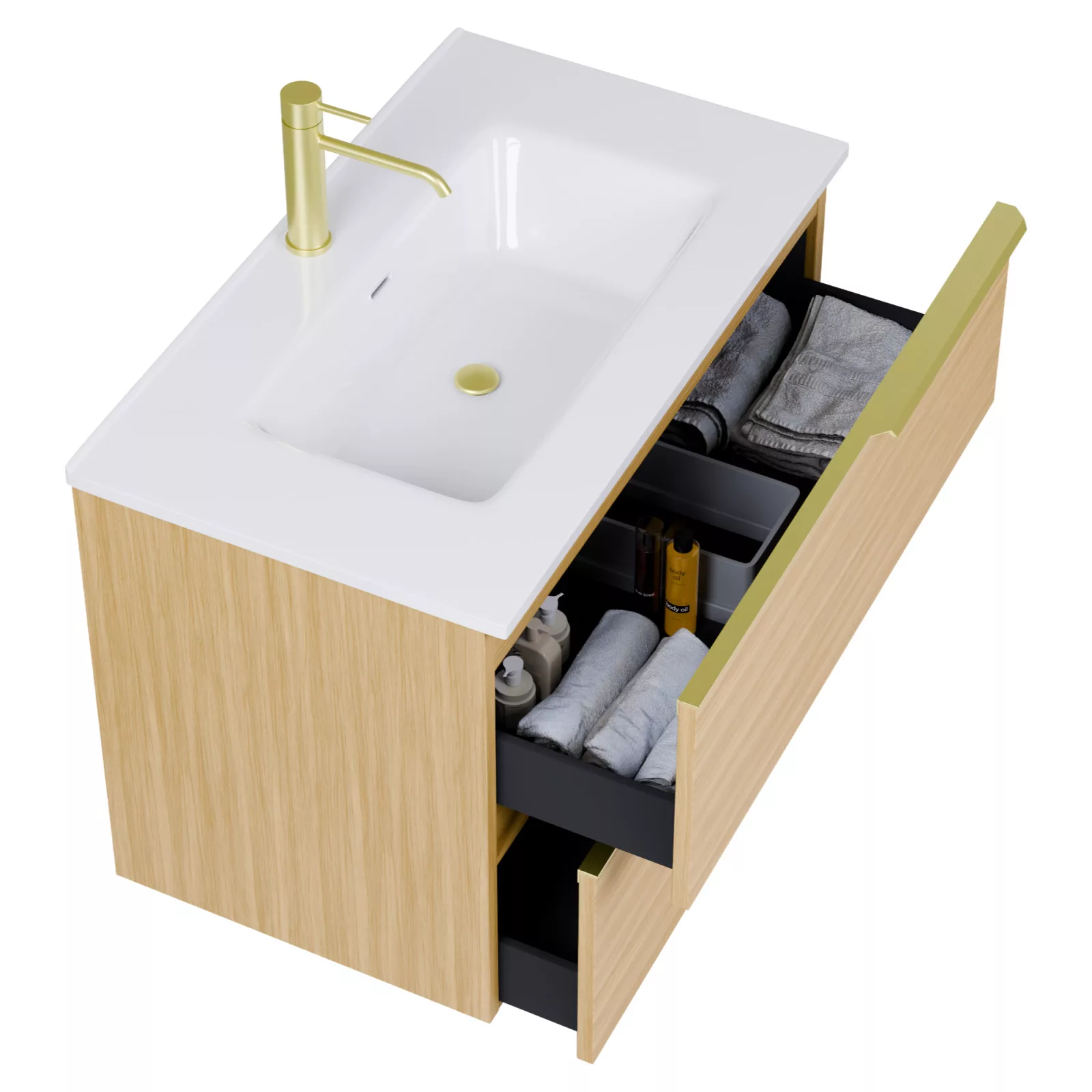 Cremona Hickory 60 komplett fürdőszoba bútor, szálcsiszolt arany fogantyúkkal