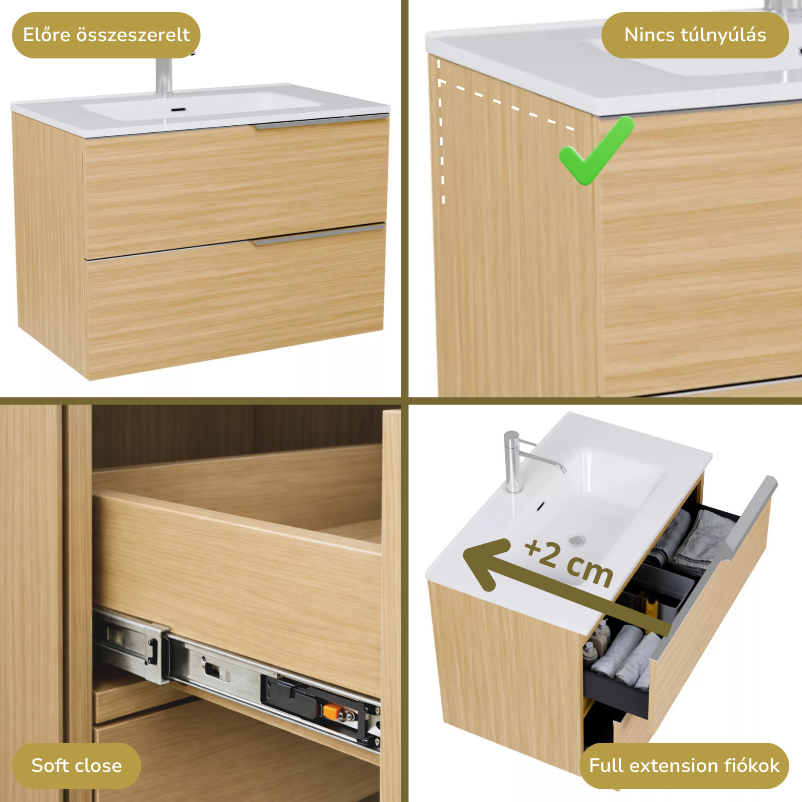 A bútort összeszerelve szállítjuk ki, így Önnek csak a mosdót és a fiók frontot kell ráhelyeznie!