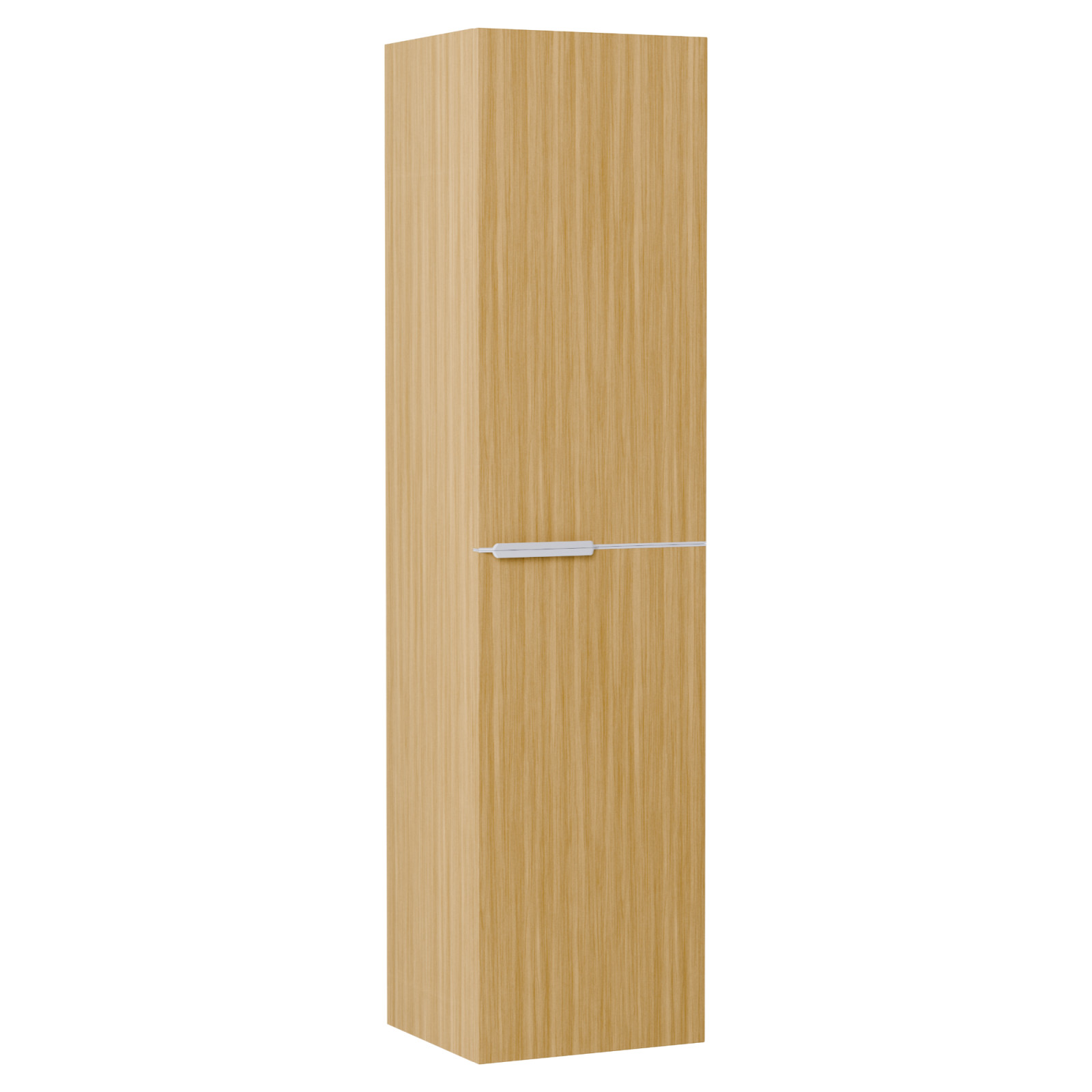 HD Cremona Hickory 80 komplett fürdőszoba bútor szett fali mosdószekrénnyel, matt fehér fogantyúkkal, tükörrel és magas szekrénnyel