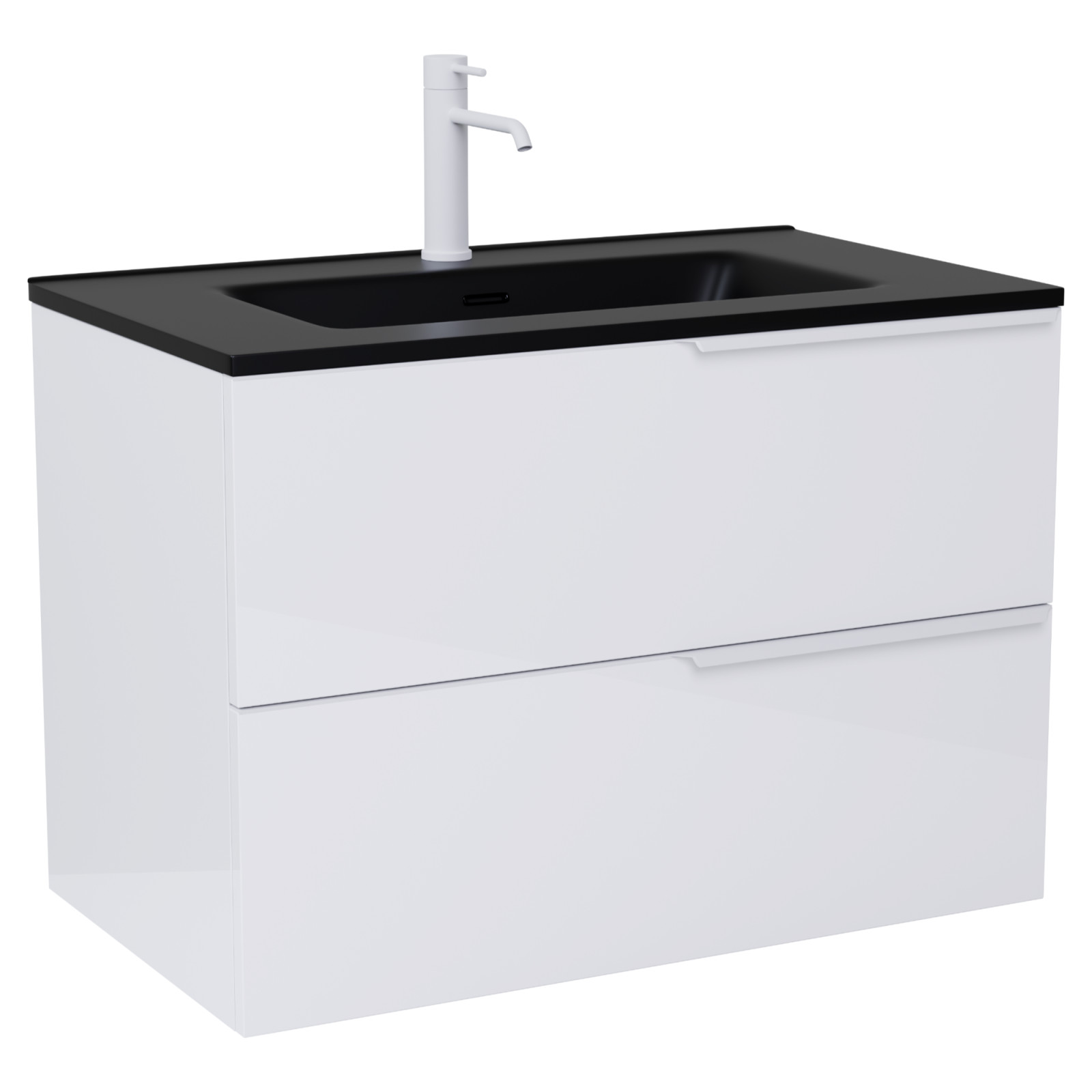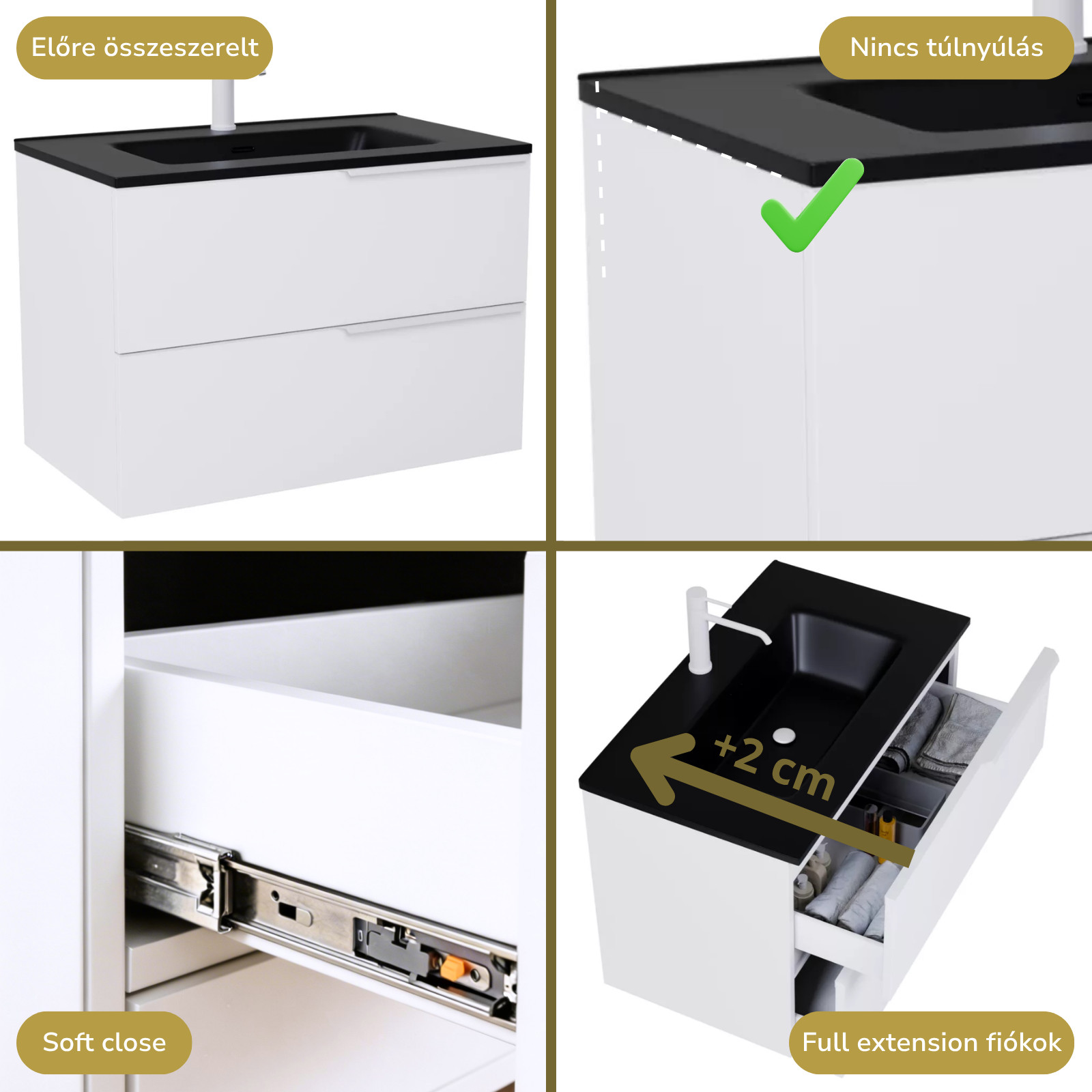 HD Cremona Lacquer White 60 fali mosdószekrény matt fehér fogantyúkkal és matt fekete slim mosdóval