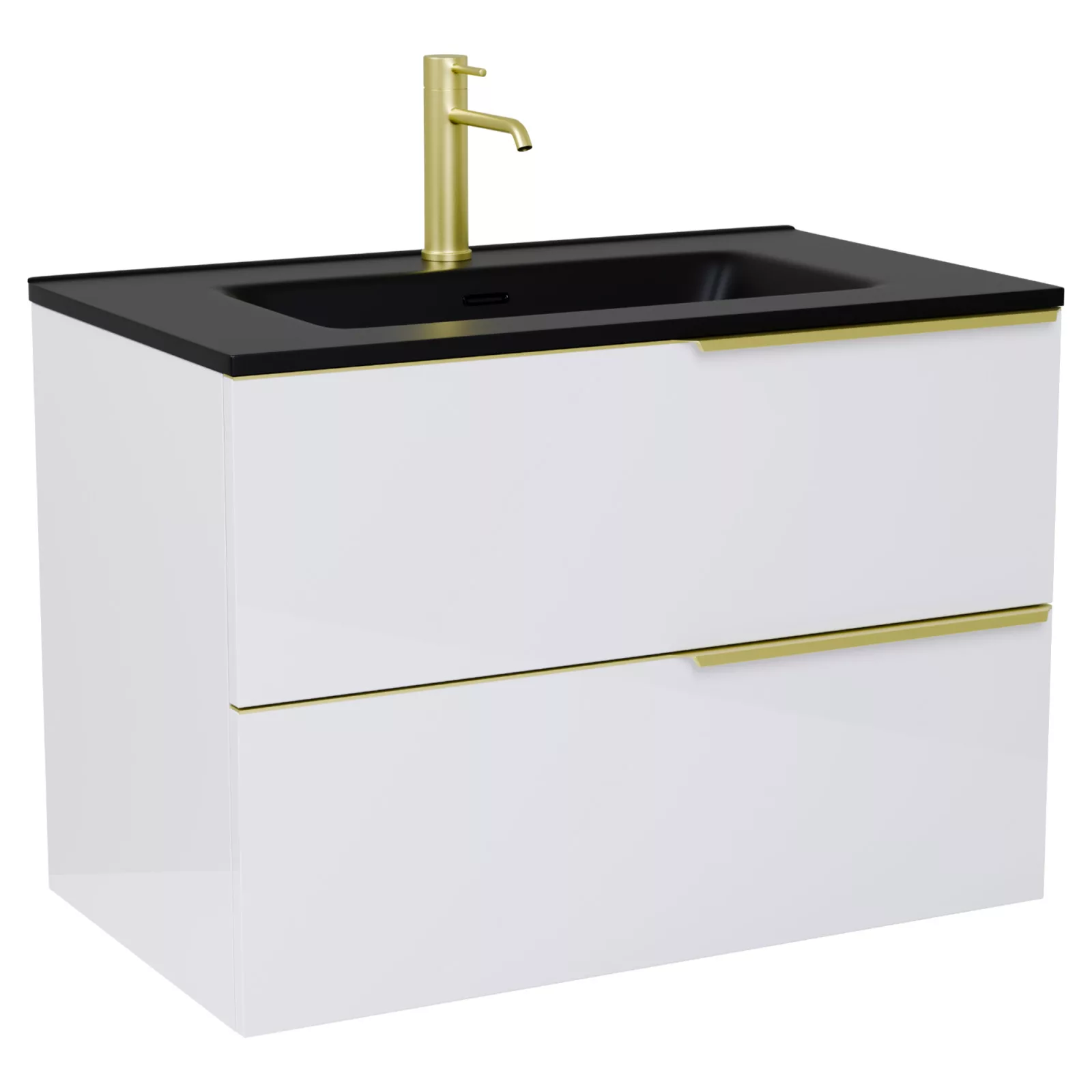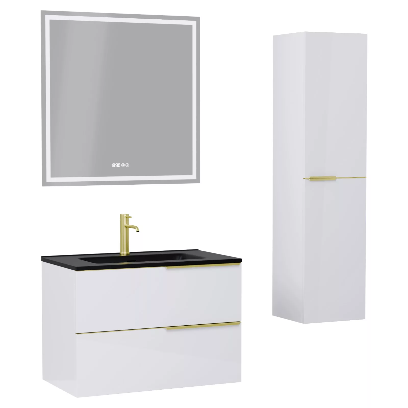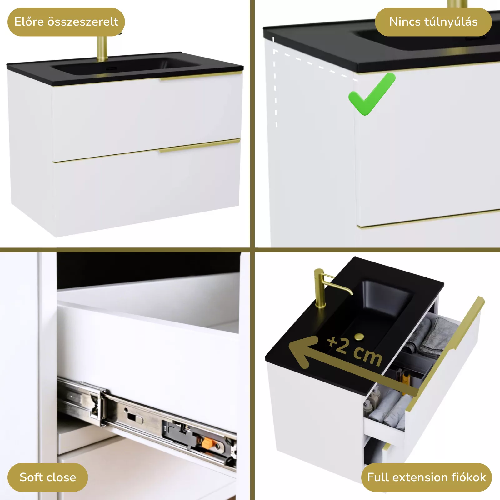 Cremona Lacquer White 60 komplett fürdőszoba bútor szett, szálcsiszolt arany fogantyúkkal