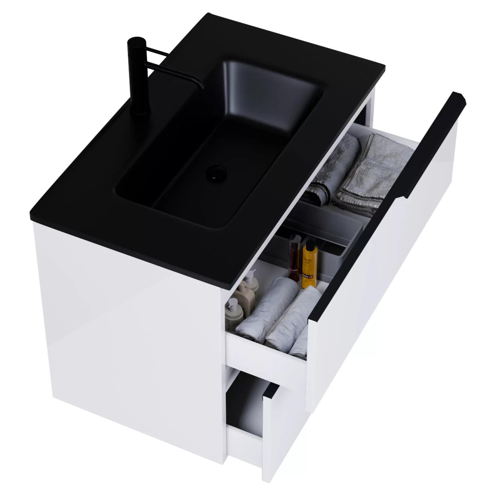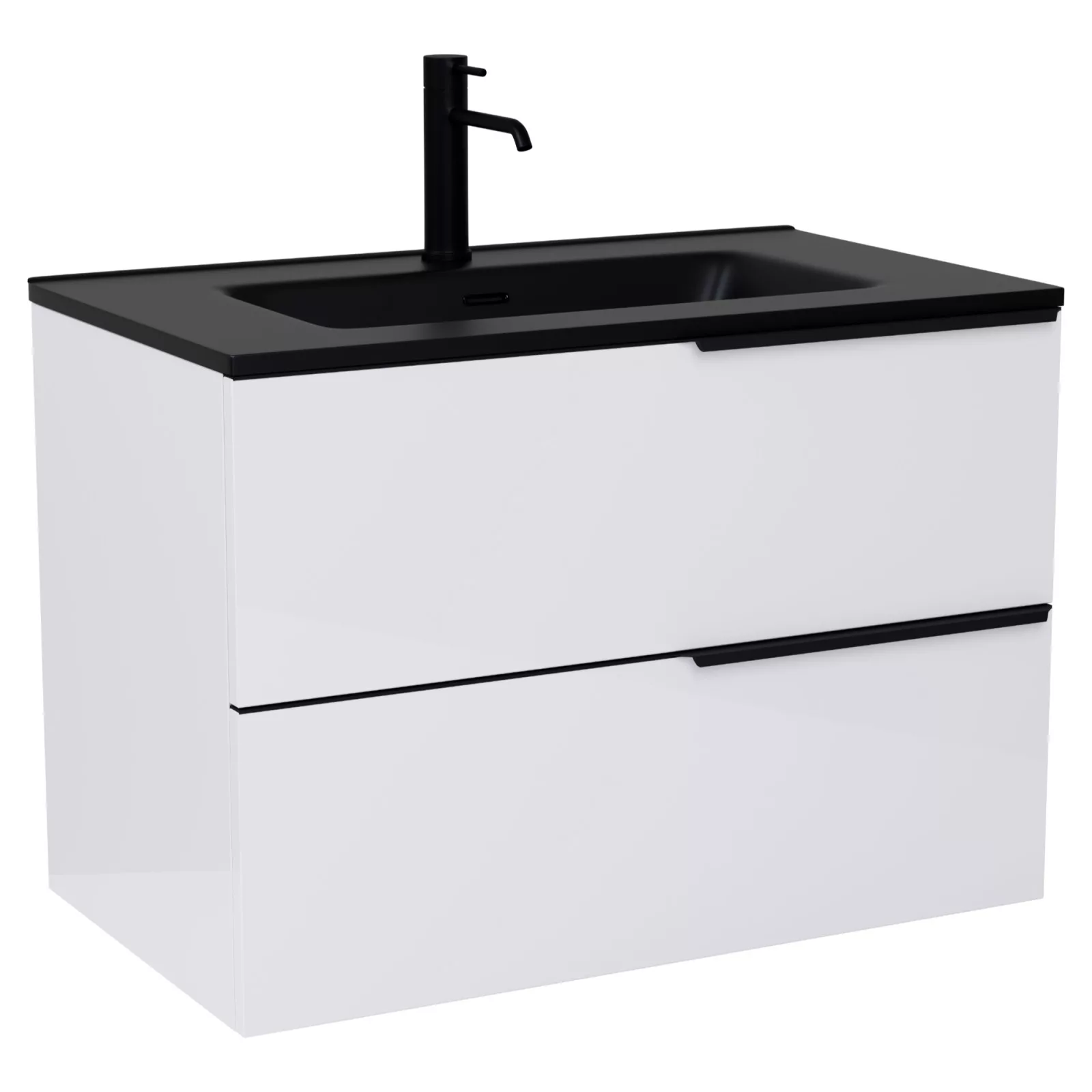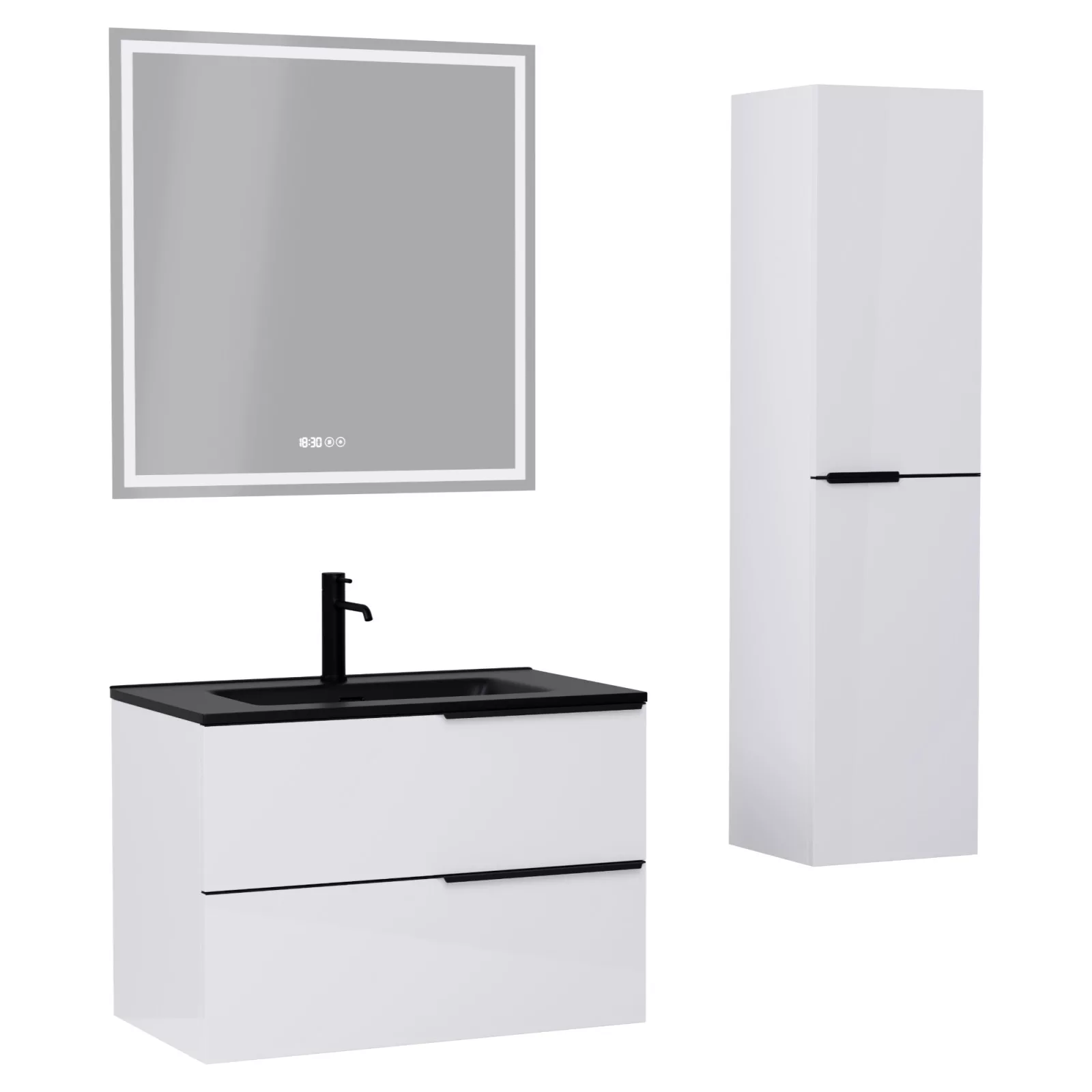 Cremona Lacquer White 60 komplett fürdőszoba bútor szett, matt fekete fogantyúkkal