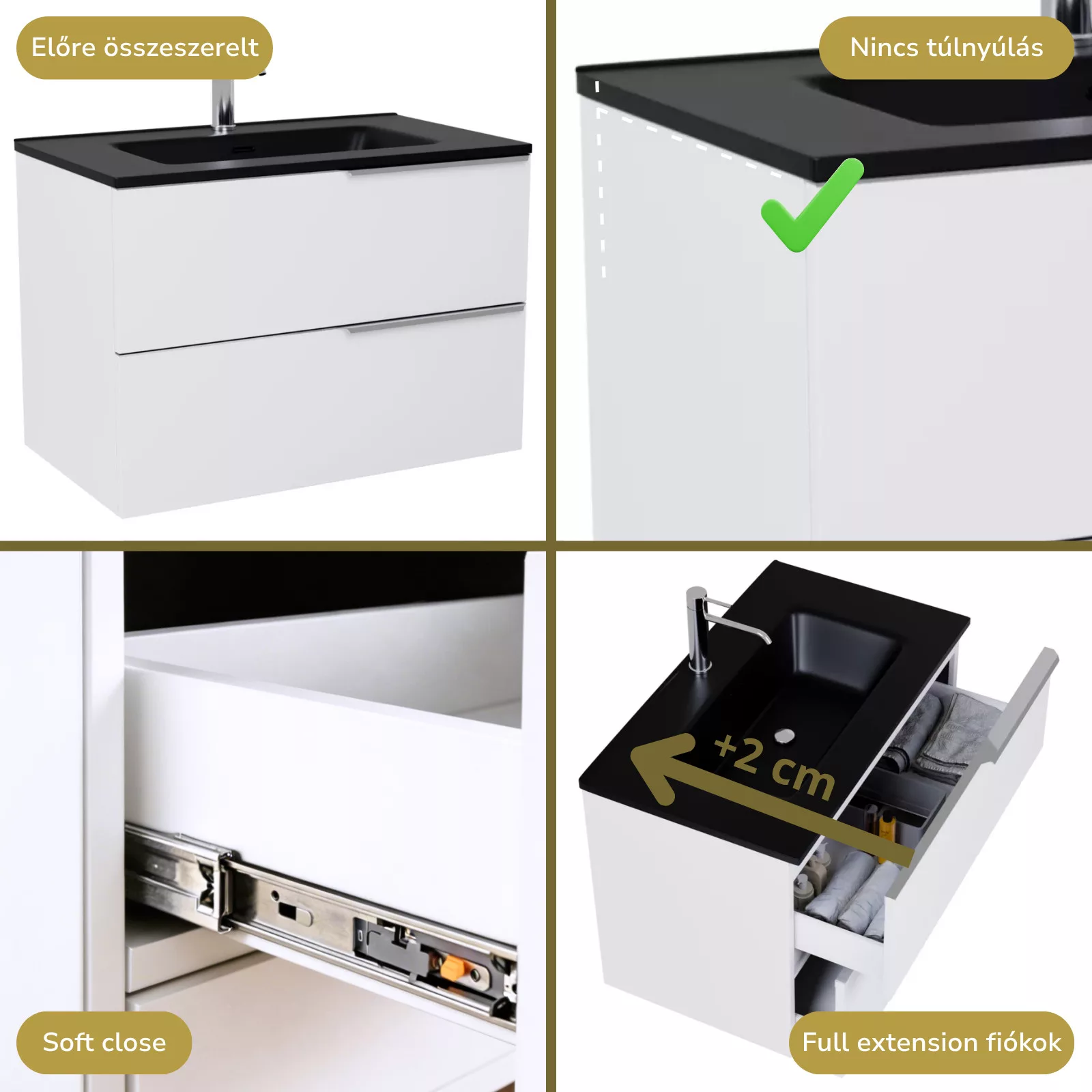 A bútort összeszerelve szállítjuk ki, így Önnek csak a mosdót és a fiók frontot kell ráhelyeznie!
